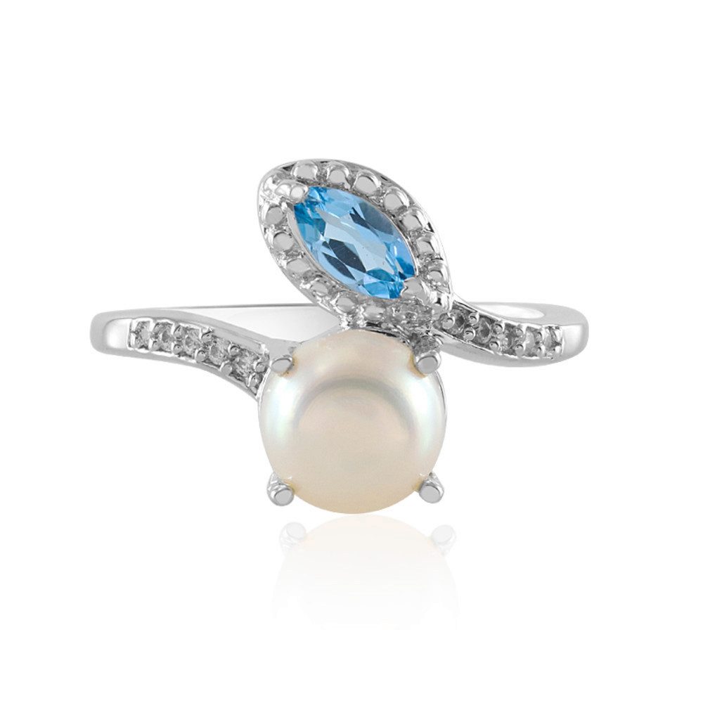 Der weiße Süßwasserzuchtperlen-Silberring von Cavill ist ein wahrer Blickfang, perfekt für Käuferinnen, die nach eleganter Raffinesse suchen. Die sanft schimmernde, runde Süßwasserzuchtperle aus China harmoniert meisterhaft mit einem funkelnden Schweizer Blautopas im Marquiseschliff, der aus Brasilien stammt. Für zusätzlichen Glamour sorgen zehn kleine, strahlende Zirkone aus Kambodscha, die das Gesamtbild aufwerten. Dieses Schmuckstück passt hervorragend zu festlicher Abendgarderobe oder einem stilvollen Cocktailkleid und verleiht auch einem Casual-Outfit eine luxuriöse Note. Für erfahrene Schmuckliebhaber besticht der Ring durch die feine Ausarbeitung der Fassung in 925er Sterlingsilber und die zeitlose Kombination aus klassischem und modernem Design.