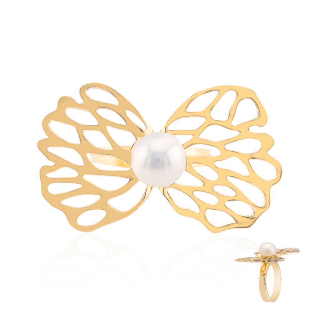 Unser weißer Süßwasserzuchtperlen-Silberring (TPC) ist die perfekte Wahl für Erstkäufer und erfahrene Schmuckliebhaber gleichermaßen. Die hochwertige, ca. 8 mm große weiße Süßwasserzuchtperle aus China ist meisterhaft in vergoldetem 925er Sterling Silber gefasst und bildet das glanzvolle Zentrum dieses eleganten Rings. Das filigrane Schmetterlingsdesign unterstreicht die Leichtigkeit und Anmut des Schmuckstücks und macht es zu einem idealen Begleiter für Hochzeiten, besondere Anlässe oder den anspruchsvollen Alltag. Kombinieren Sie diesen Ring mit einem schicken Kleid oder einem raffinierten Outfit, um Ihrem Look eine edle Note zu verleihen.