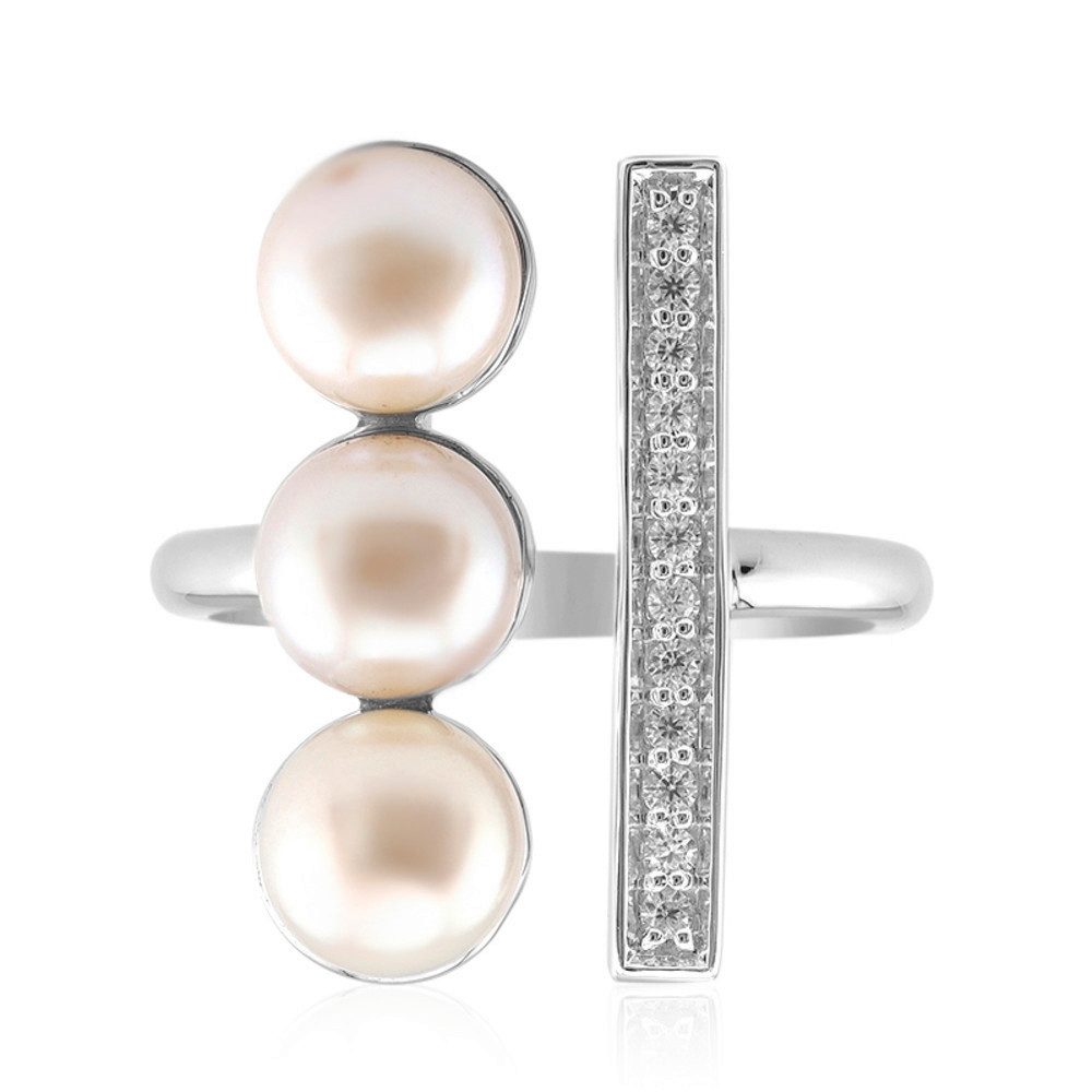 Der weiße Süßwasserzuchtperlen-Silberring von Cavill ist ein elegantes Schmuckstück, ideal für alle, die ihre erste hochwertige Perle erwerben möchten. Die drei glänzenden weißen Süßwasserperlen aus China sind rund geschliffen und kunstvoll in 925er Sterlingsilber eingefasst. Für noch mehr Funkeln sorgt ein zierlicher Akzent aus 12 brillanten Zirkonen aus Kambodscha, die das schlichte Design gekonnt veredeln. Für Kenner der Perlen- und Schmuckwelt offenbart sich hier ein faszinierender Mix aus klassischer Eleganz und moderner Asymmetrie. Der Ring passt hervorragend zu Business-Outfits oder eleganter Abendmode und macht sich ebenso perfekt als Highlight zu legeren Looks.