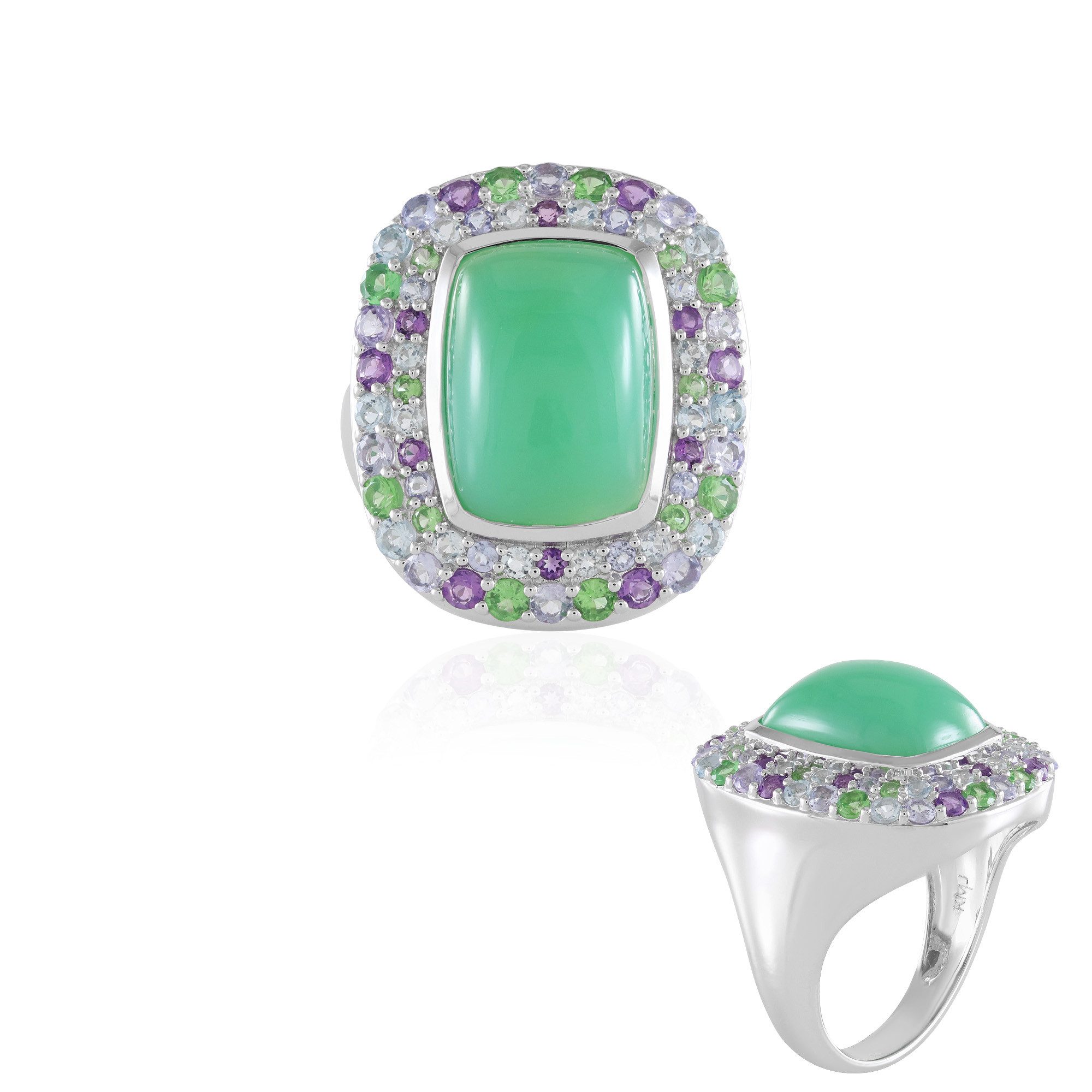 Der Chrysopras-Silberring (KM by Juwelo) ist ein herausragendes Beispiel feiner Schmuckkunst. Für Erstkäufer bietet er einen faszinierenden Einblick in die Welt hochwertiger Edelsteine, mit einem 8,55 Karat schweren Chrysopras im antiken Cabochon-Schliff aus Brasilien, der meisterhaft in eine Fassung aus 925er Sterlingsilber eingebettet ist. Die Kombination aus smaragdgrünem Chrysopras und funkelnden Tansaniten, Amethysten, Tsavoriten und Aquamarinen macht den Ring zu einem echten Blickfang. Für Liebhaber von Schmuck mit grünen Steinen ist dieses Stück ein absolutes Highlight. Aufgrund seines markanten Designs ist es ideal zum Tragen zu festlichen Anlässen ebenso wie im modischen Alltag. Kombinieren Sie den Ring beispielsweise mit einem schicken Cocktailkleid oder einem stilvollen Business-Outfit, um eine kraftvolle Wirkung zu erzielen.