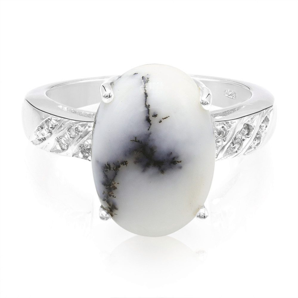 Der Dendriten-Achat-Silberring ist ideal für Einsteiger und Liebhaber hochwertiger Edelsteine. Der 3,75 ct große, ovale dendritische Achat aus Brasilien zeigt faszinierende, naturinspirierte Einschlüsse, die von zehn funkelnden weißen Topasen dezent ergänzt werden. Das 925er Sterling Silber rahmt den 27x21 mm großen Stein in einem eleganten Design ein, das sowohl im Alltag als auch zu besonderen Anlässen glänzt. Kombinieren Sie den Ring mit erdigen oder weißen Outfits für einen stilvollen Akzent.