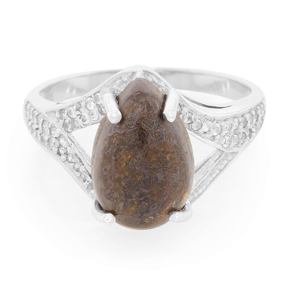 Der Dinosaurier-Quarz-Silberring von Cavill ist ein faszinierendes Schmuckstück, das sowohl Erstkäufer als auch erfahrene Schmuckliebhaber begeistert. Der tropfenförmige Cabochon aus hochwertigem Dinosaurierquarz aus den USA mit einem Gewicht von 5,22 Karat beeindruckt durch seine natürliche Tiefe und Farbe. Umgeben wird der Edelstein von 47 funkelnden Zirkonen mit insgesamt 0,341 Karat aus Kambodscha, die perfekt in das 925er Sterlingsilber eingefasst sind. Dieses außergewöhnliche Design verbindet prähistorischen Charme mit modernem Stil und ist ideal für besondere Anlässe oder als eleganter Hingucker im Alltag. Kombinieren Sie den Ring zu schicken Outfits, um Ihre individuelle Note zu unterstreichen.