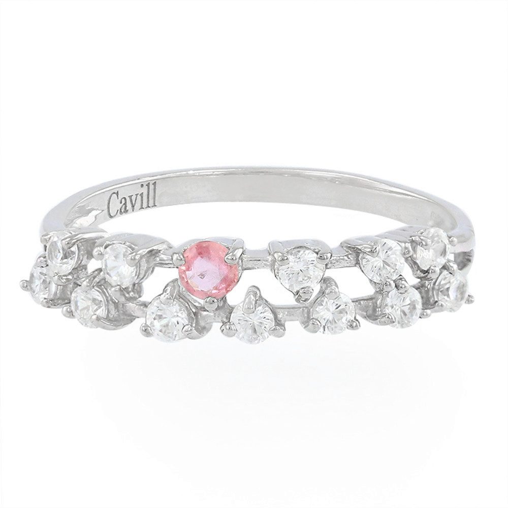 Der Padparadscha-Saphir-Silberring von Cavill besticht durch seinen exklusiven, rötlich-orangefarbenen Hauptstein aus Sri Lanka, liebevoll in platiniertes 925er Sterlingsilber eingefasst. Ideal für Einsteiger, die eine besondere Farbvielfalt suchen, überzeugt er zugleich Kenner durch die harmonische Zirkonbesetzung aus Kambodscha. Perfekt geeignet für festliche Anlässe und den stilvollen Alltag, ergänzt dieser Ring elegante Outfits mit einem farbintensiven Akzent.