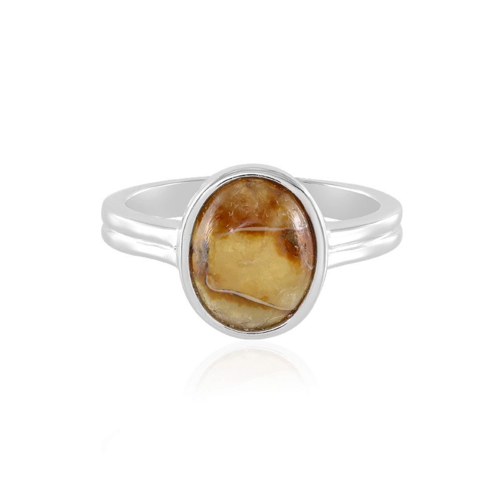 Der Ammonit-Silberring von Cavill ist ein faszinierendes Schmuckstück, das sowohl Einsteiger als auch erfahrene Liebhaber außergewöhnlicher Steine begeistert. Der ovale Cabochon aus einem 2,52 Karat schweren Ammonit, gewonnen aus den Tiefen Madagaskars, wird meisterhaft in 925er Sterlingsilber eingefasst und entfaltet so seine natürliche Schönheit. Seine warmen Gelb- und Brauntöne sowie die einzigartigen Fossilmuster machen diesen Ring zu einem perfekten Begleiter für elegante Abendveranstaltungen oder den stilvollen Alltag. Er lässt sich hervorragend mit klassischen Outfits oder modernen Vintage-Looks kombinieren und zieht garantiert bewundernde Blicke auf sich.