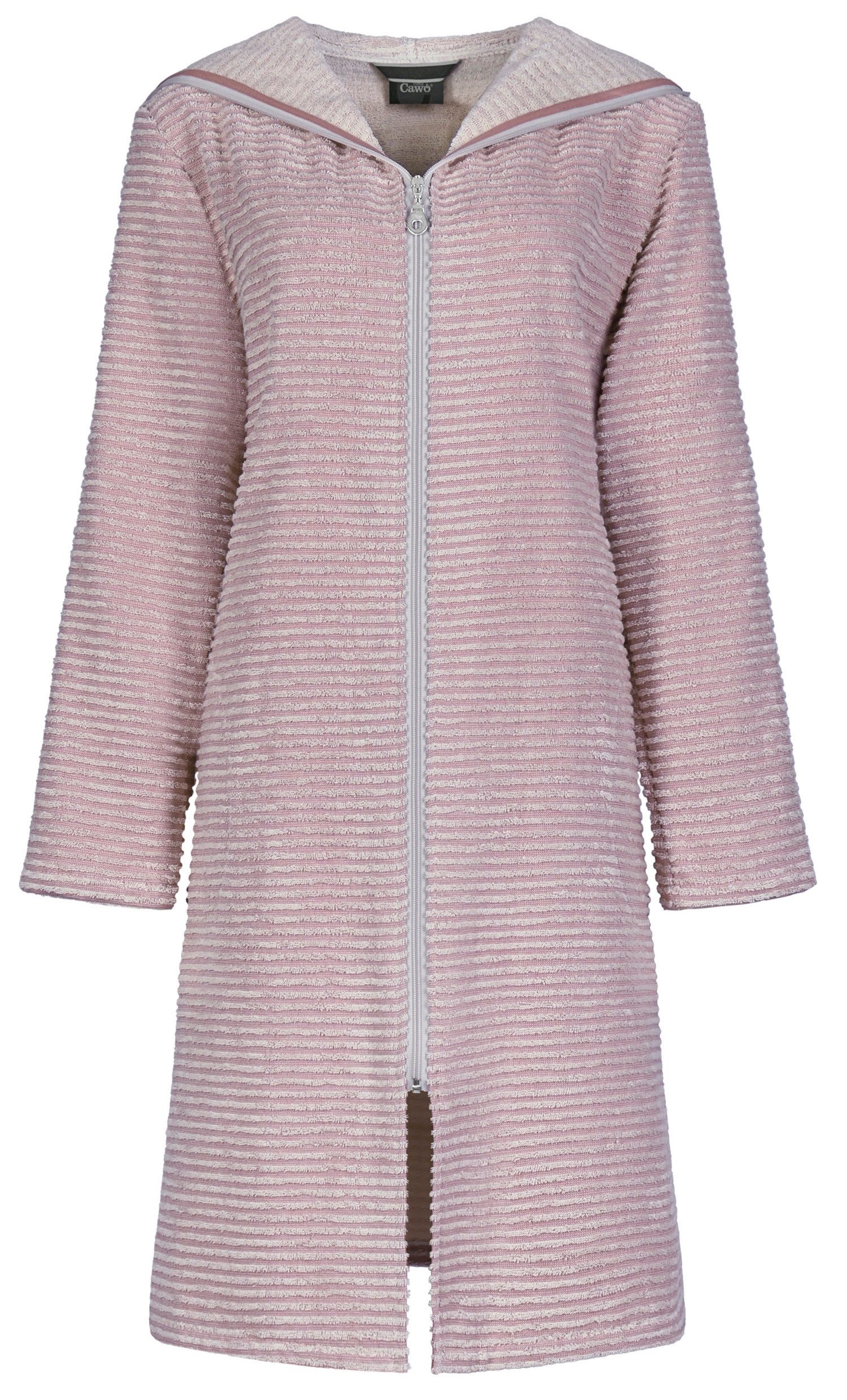 Cawö Damenbademantel Damen Bademantel Reißverschluss Kapuze, midi, Baumwolle, Kapuze, Reißverschluss, Baumwolle