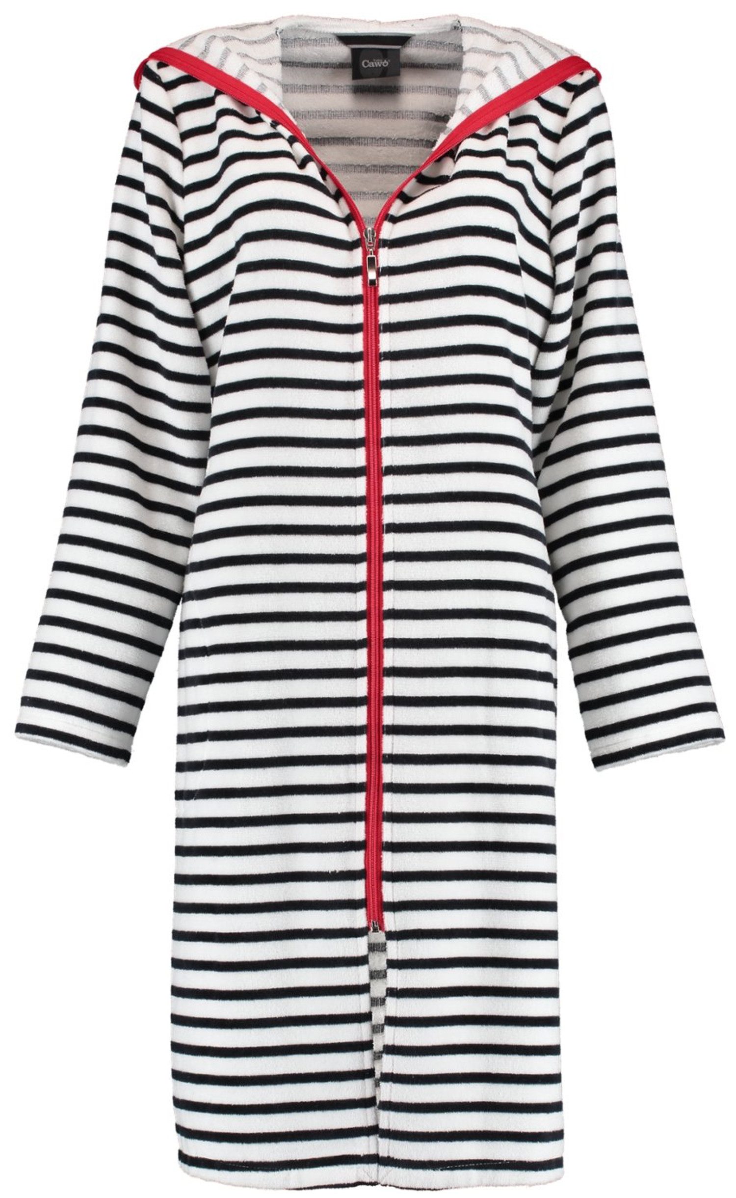 Cawö Damen Bademantel mit Kapuze und Reißverschluss. Material: 100% Baumwolle. Длина ca. 105cm