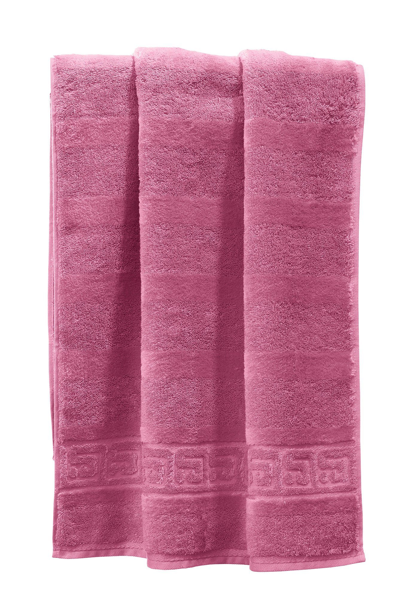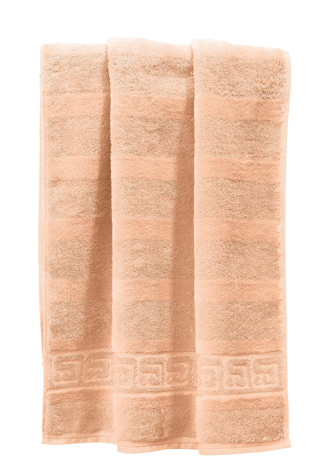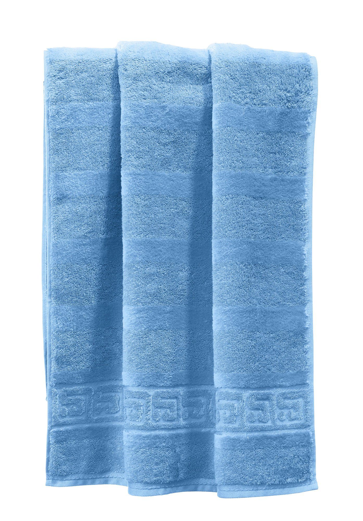 Cawö Walk-Frottier Handtuch "1001 Noblesse". Die hochwertige Serie überzeugt durch ihr überdurchschnittliches Volumen, ihr klassischer Charakter wird von der dezenten Mäander-Bordüre unterstrichen. Veloursstreifen verleihen dem Tuch eine einzigartige, samtig schimmernde Optik. Die sorgsame Verarbeitung ausgesuchter supergekämmter Baumwolle macht diese Qualität flauschig weich, gut trocknend und hautsympathisch. Pures Frottiervergnügen!