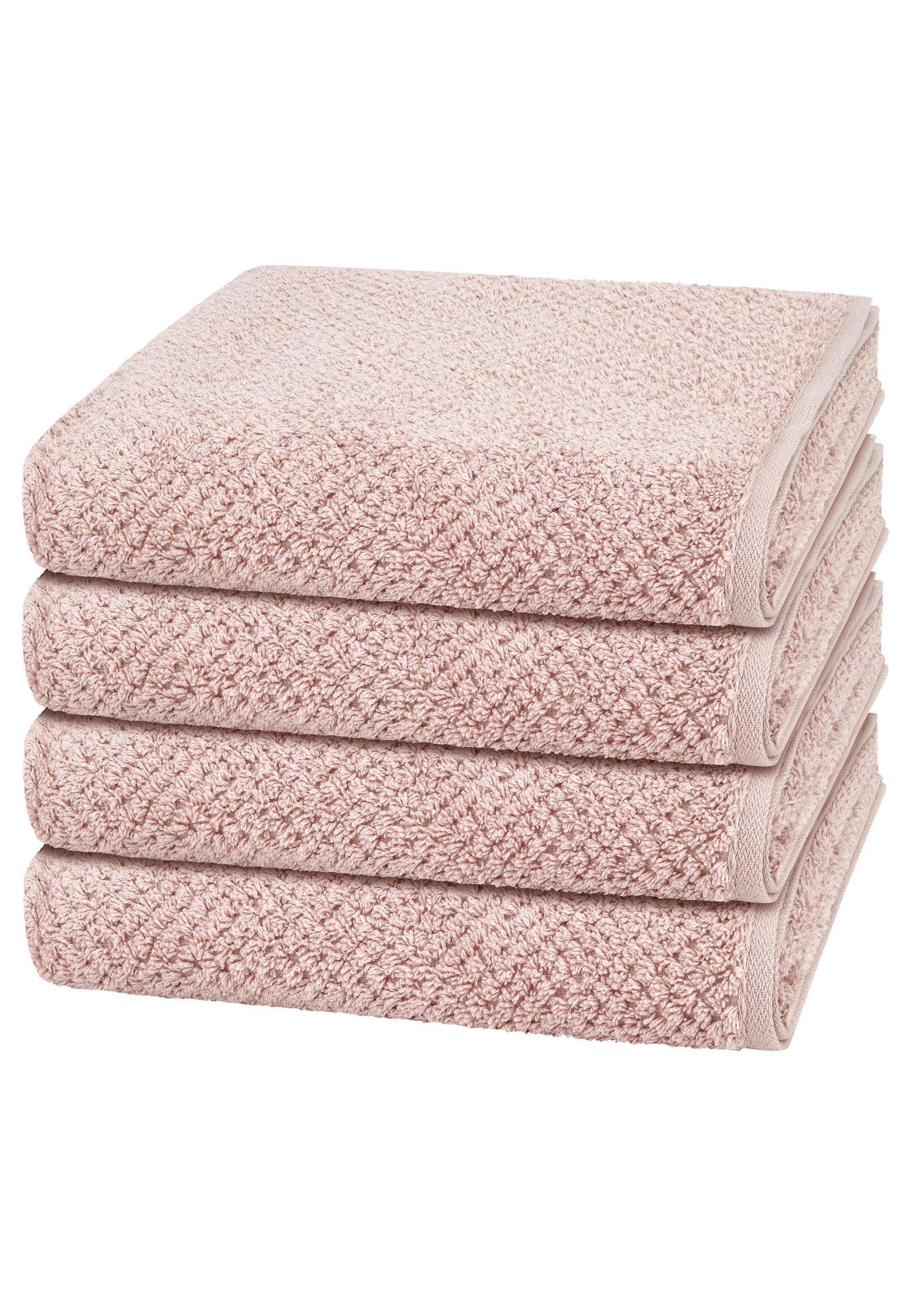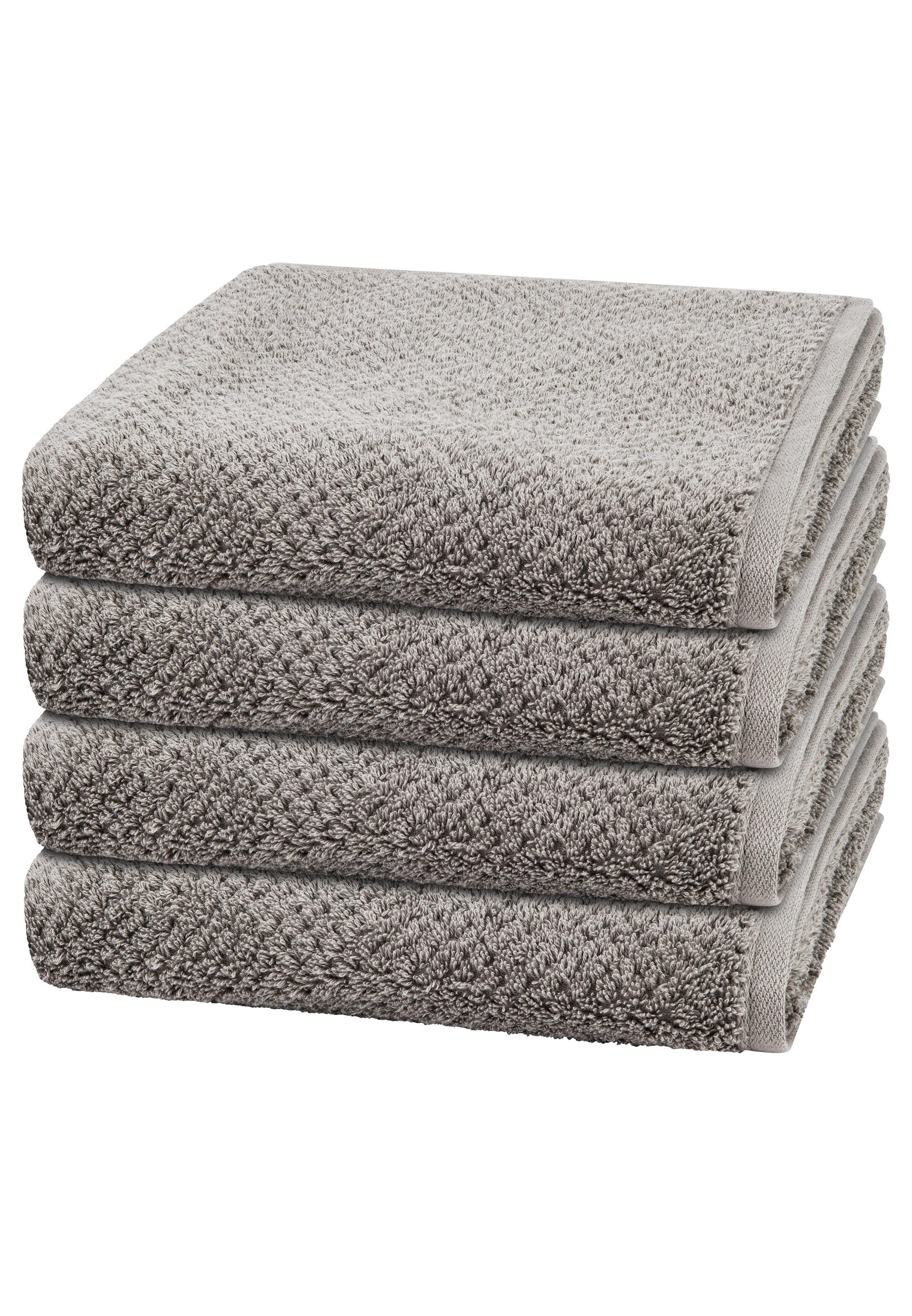 Zeitlose Eleganz zieht mit der Handtuchserie Pure ins Badezimmer ein. Das Set ist aus reiner Baumwolle mit dichtem Flor gefertigt. So verwöhnen die Tücher mit einer soften und zugleich belebenden Haptik. Das dezente Uni-Design mit feiner Struktur verleiht ihnen eine stilvolle Optik, während sie saugfähig, hautfreundlich und pflegeleicht für tägliche Wohlfühlmomente sorgen. Set besteht aus: 4 X Handtuch (50 X 100cm)
