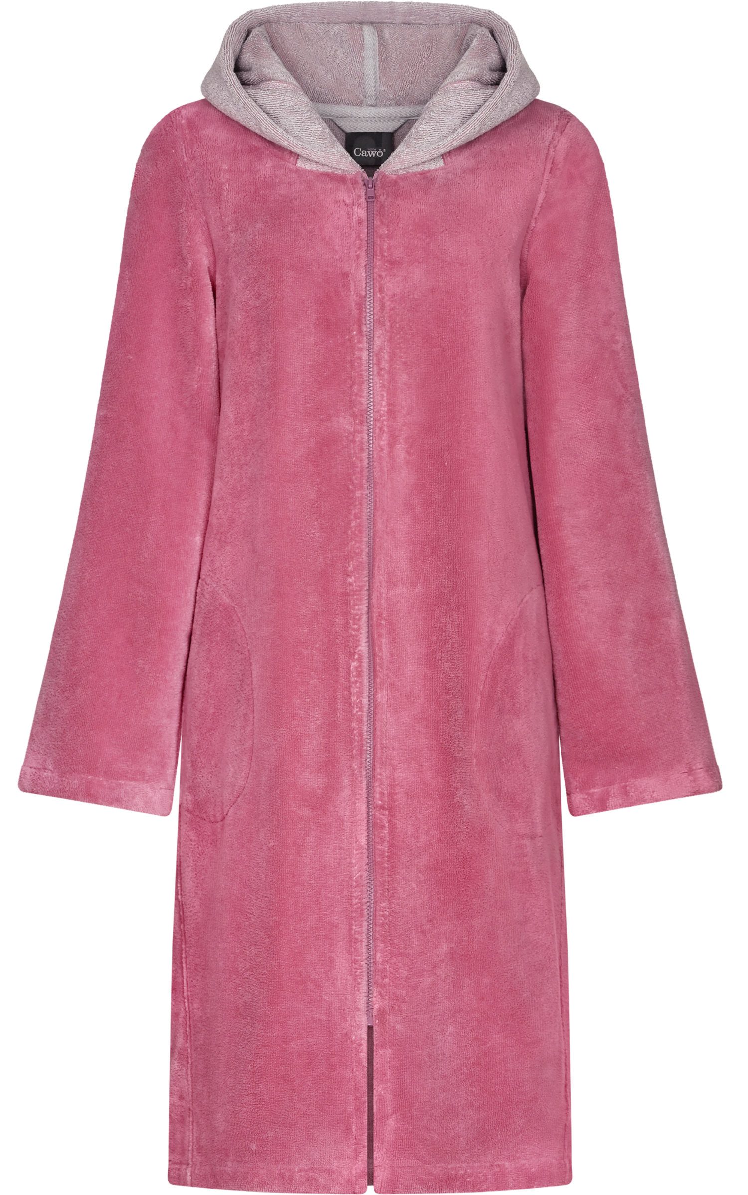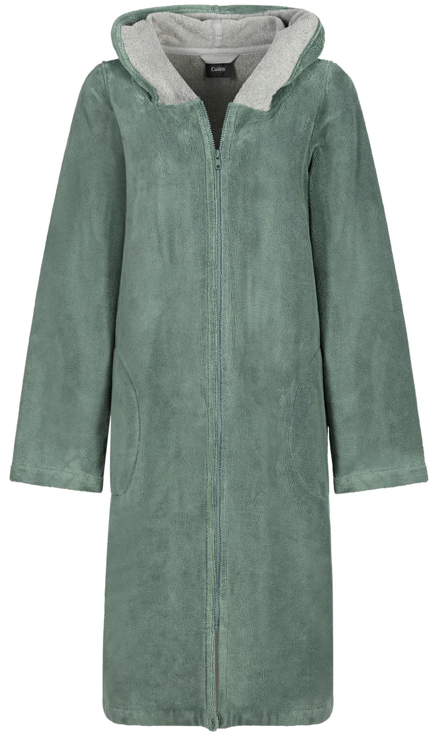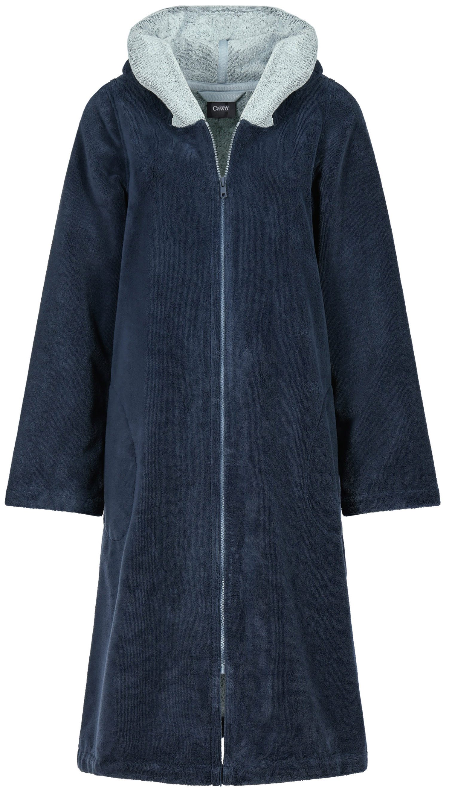 Dieser Cawö Damen Bademantel vereint Funktionalität mit einem sportlich-modernen Design. Die Außenseite besteht aus einem strapazierfähigen Materialmix von 45% Baumwolle und 55% Polyester, der für eine formstabile Passform und Langlebigkeit sorgt. Die Innenseite ist vollständig aus 100% Baumwolle gefertigt, was ein weiches, angenehmes Tragegefühl auf der Haut bietet und gleichzeitig für hohe Atmungsaktivität und Feuchtigkeitsaufnahme sorgt. Mit einer Длина von 105 cm ist der Bademantel ideal für alle, die eine kürzere, praktische Passform bevorzugen, die dennoch ausreichend bedeckt und Komfort bietet. Die Kapuze sorgt für zusätzliche Gemütlichkeit und Wärme, perfekt für den Einsatz nach dem Duschen oder Baden. Der vordere Reißverschluss ermöglicht ein einfaches An- und Ausziehen und verleiht dem Bademantel eine moderne, sportliche Note. Dieser Bademantel ist die ideale Wahl für Frauen, die nach einem bequemen und funktionalen Begleiter für den Alltag suchen.