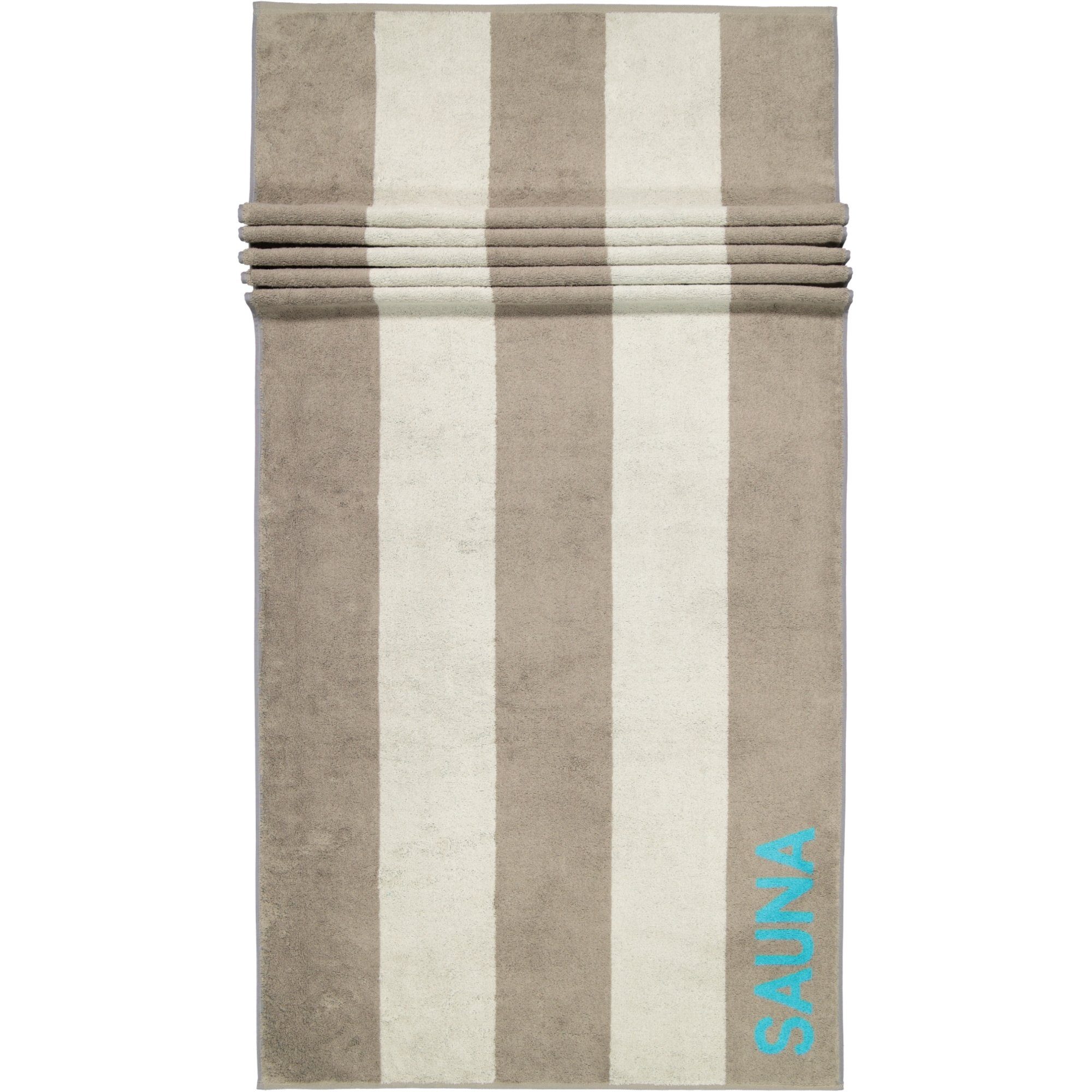 Cawö Saunatuch 599 - Attraktives Streifendesign bringt Frische für jeden Saunabesuch! Dieses Saunatuch ist der ideale Begleiter für Ihren Saunagang! Mit seinem raffinierten Doubleface-Look können Sie sowohl eine gestreifte Seite in Grautönen sowie eine aussagekräftige Uni-Seite genießen. Ganz nach Lust und Laune! Es besteht aus 100% Baumwolle und daher besonders weich und saugfähig.