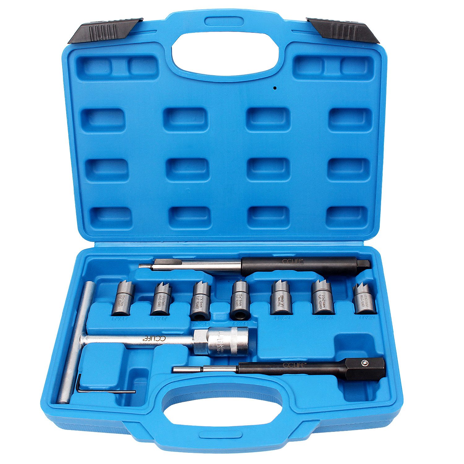 Inhalt: 15 x 19 mm Fräser, plane Fräsfläche für viele Auto 17 x 17 mm Fräser, abgewinkelte Fräsfläche für Mercedes-Benz CDI 17 x 21 mm Fräser, abgewinkelte Fräsfläche für FIAT und IVECO 17 x 17 mm Fräser, plane Fräsfläche für BMW, PSA, Renault, Ford, Delphi und Bosch Injektoren 17 x 19 mm Fräser, plane Fräsfläche für Bosch Injektoren bei Mercedes-Benz CRD 18 x 21 mm Fräser, abgewinkelte Fräsfläche für viele Auto 20 x 21 mm Fräser, abgewinkelte Fräsfläche für viele Auto 1 Steckschlüssel mit T-Griff 1 Winkelschlüssel