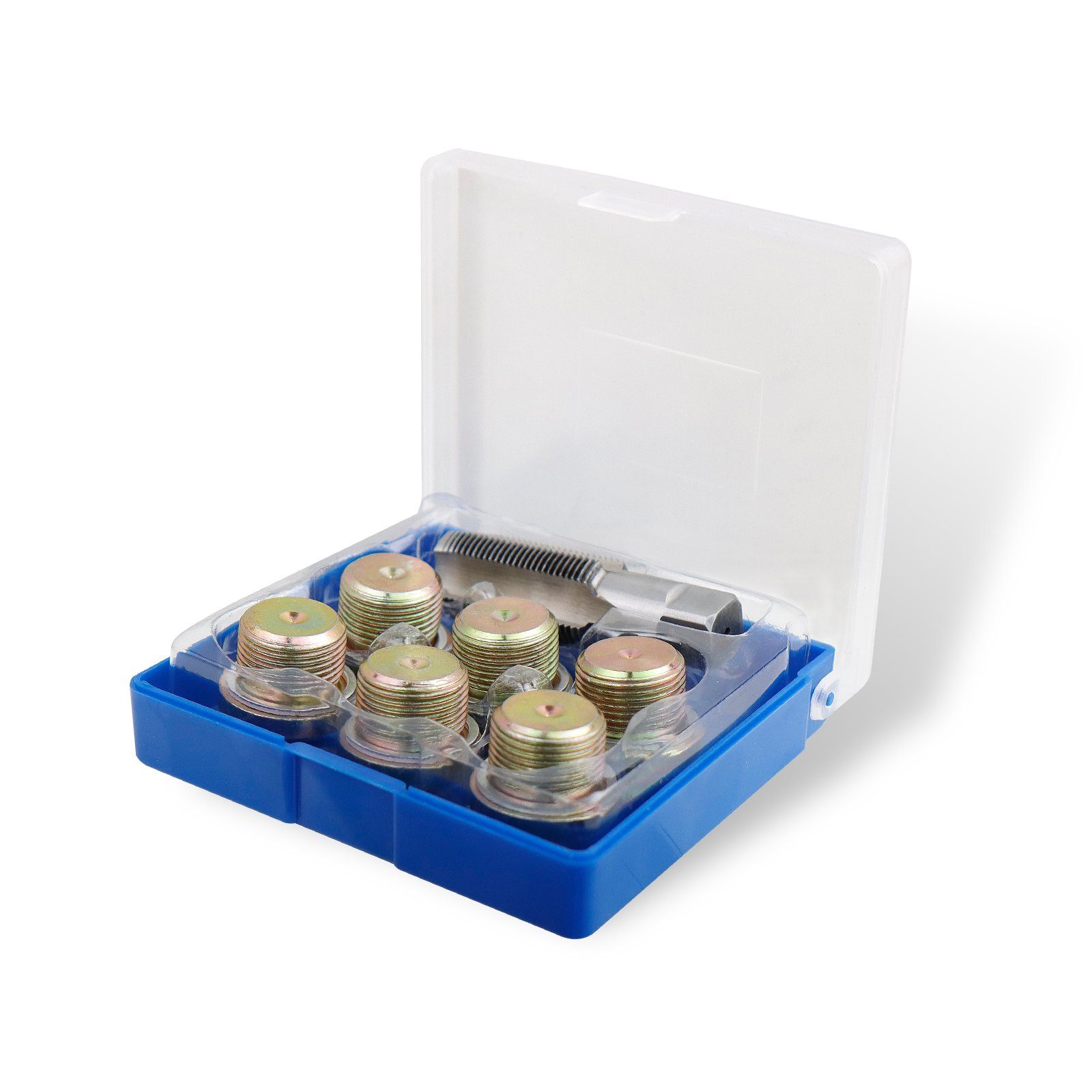 Lieferumfang | Gewindebohrer: 1 x M22 x 1,5; 6 x neue Ölablass Schrauben M22; 6 x Dichtringe M22 |