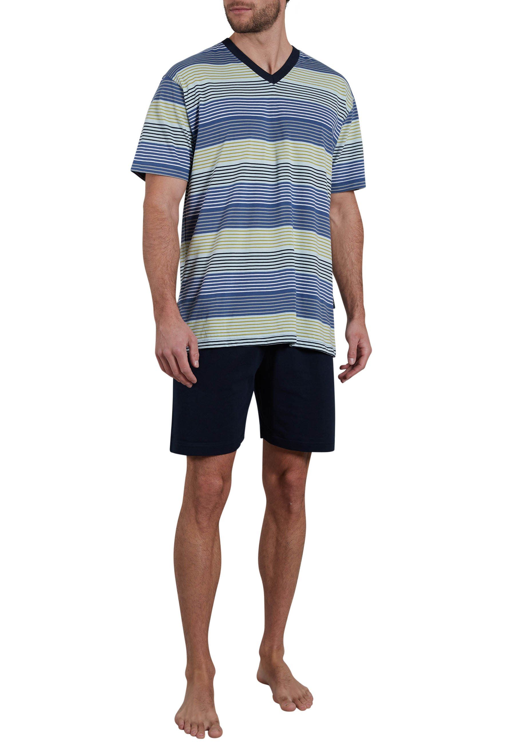 Ein modernes Design trifft auf eine legere Schnittführung und weiche Stoffe – diesen kurzen Pyjama von Götzburg sollte man(n) sich auf keinen Fall entgehen lassen. Für den Single Jersey wurde eine spezielle Baumwollmischung verarbeitet, die durch ihre Formbeständigkeit und Farbbrillanz überzeugt. Zugleich ist der Stoff herrlich leicht und soft in seinem Gewicht, sodass du dich in diesem Zweiteiler auch im Sommer absolut wohlfühlen wirst.