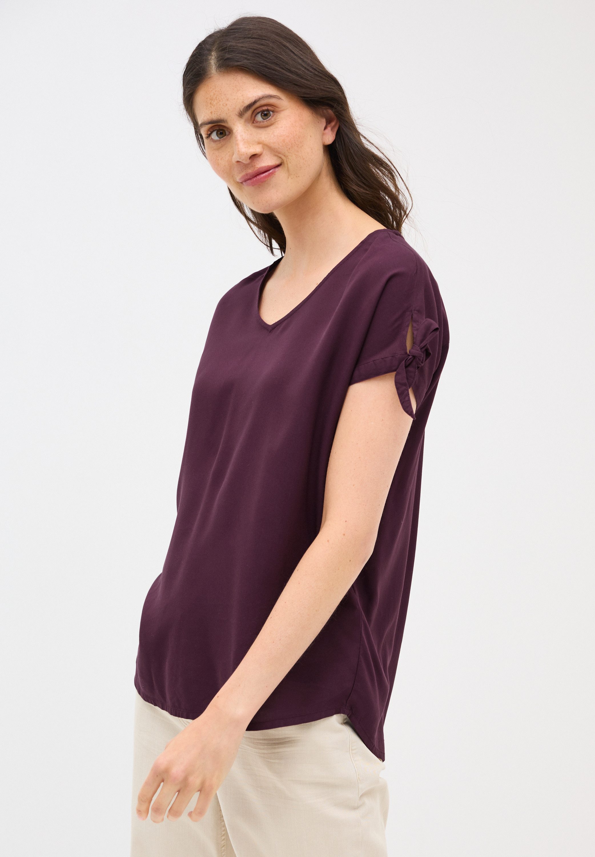 Besondere Merkmale | Blusenshirt mit gerundetem V-Ausschnitt |