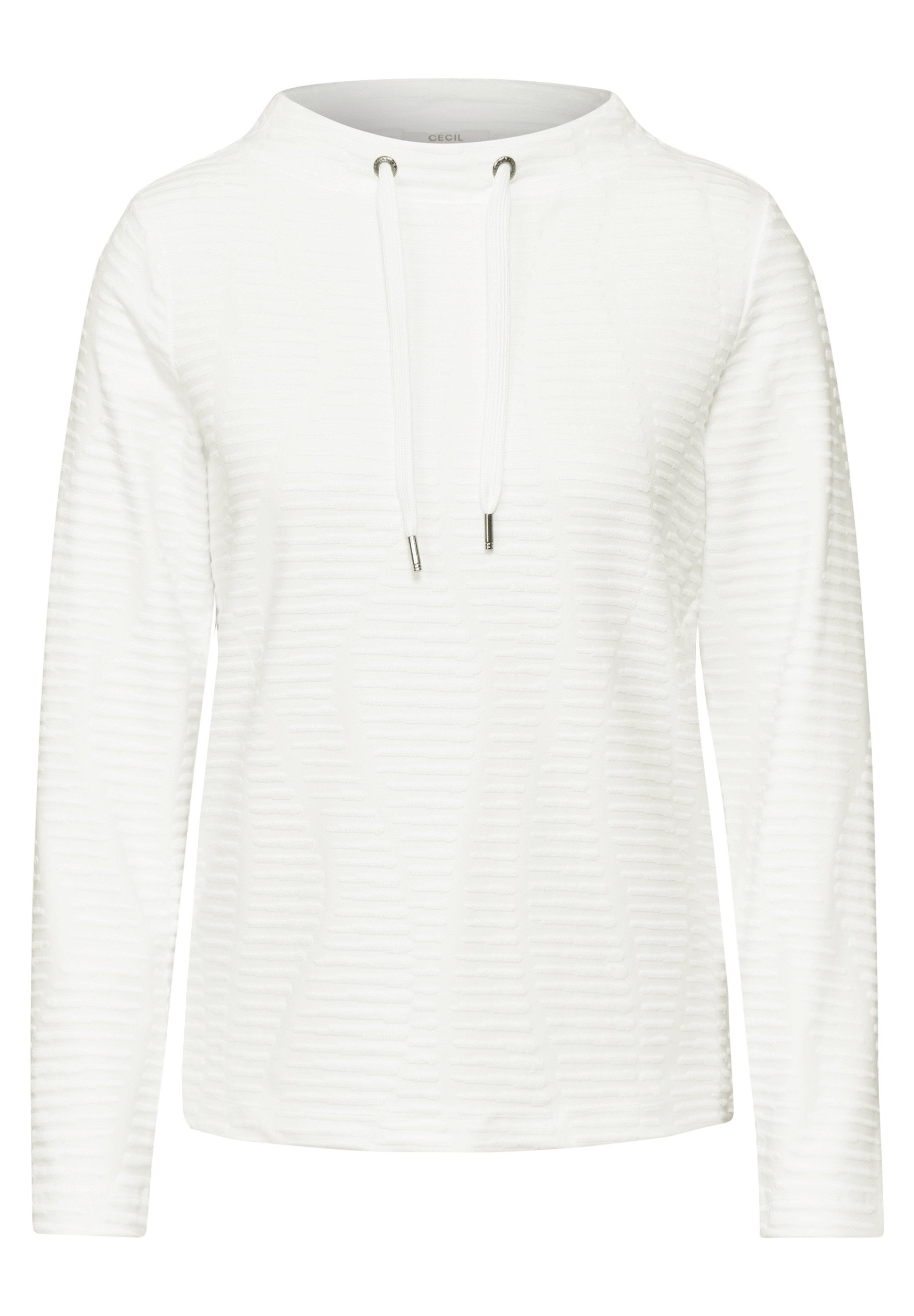 Mit dem Langarmshirt von Cecil stellst du im Handumdrehen ein neues Outfit zusammen. Mit der Kordel sieht es lässig und verspielt aus. Der Stehkragen wird nicht umgeschlagen, liegt am Hals an und ist eine Grundlage für toughe Outfits. Dieses Shirt hat einen Rundhalsausschnitt und ist hüftbedeckend sowie gerade geschnitten, sodass dein Oberkörper dezent in Szene gesetzt wird.