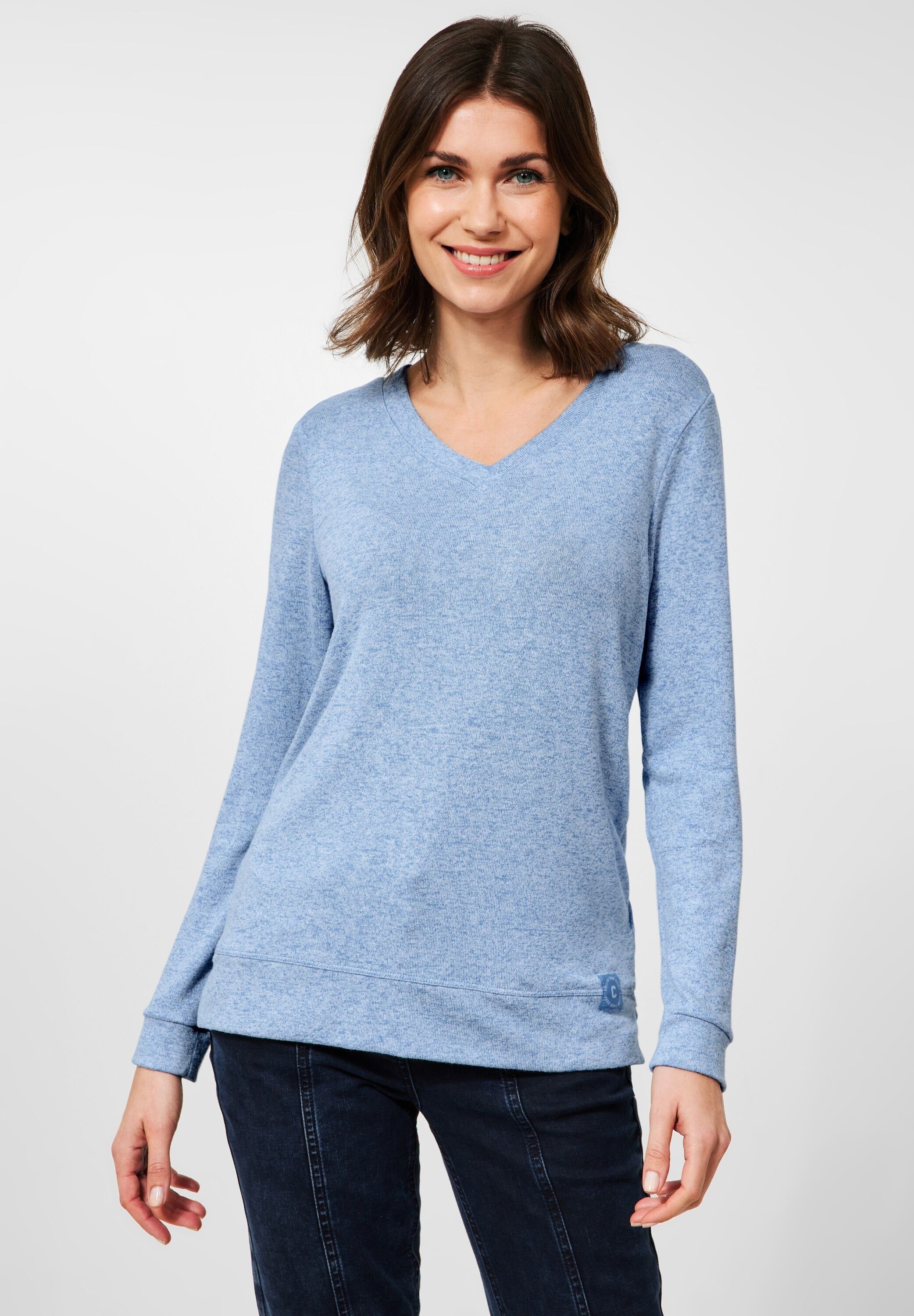 Besonders gut zu sportlichen und unkomplizierten Freizeit Outfits passt dieses Longsleeve von CECIL. Die farbenfrohe Melangeoptik bestimmt den optischen Auftritt in diesem Basic Damenshirt von CECIL. Das Basic Longsleeve besticht mit einem lässig sitzenden Stil. Bestimmende Elemente sind hier der lange Arm ebenso wie die legere Form. Damit gewinnt das Damenshirt deutlich an Ausstrahlung. So wirkt das Basic Damenshirt mit dem eleganten V-Ausschnitt immer wie ein echtes Unikat. So strahlt das Damenshirt eine modisc