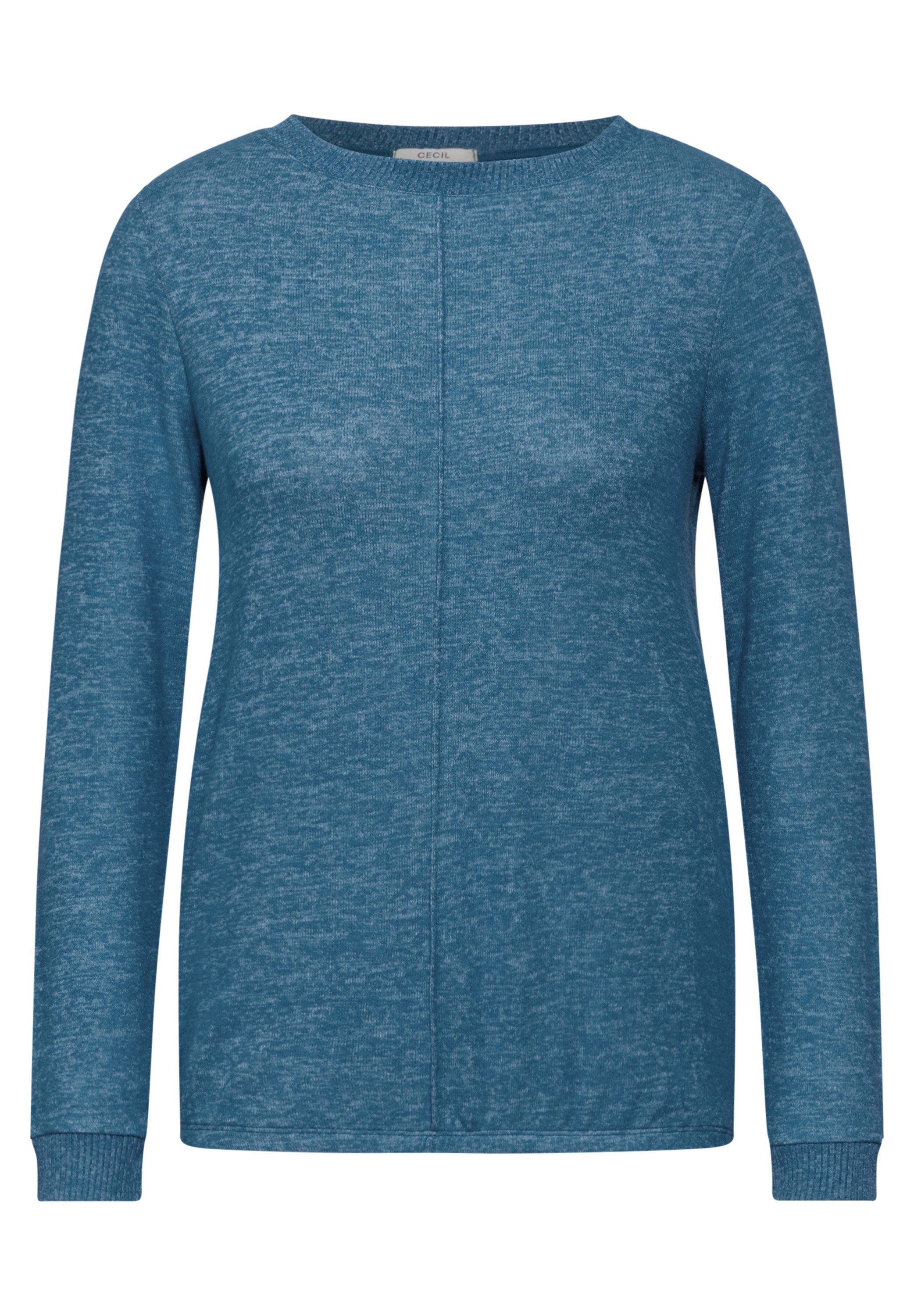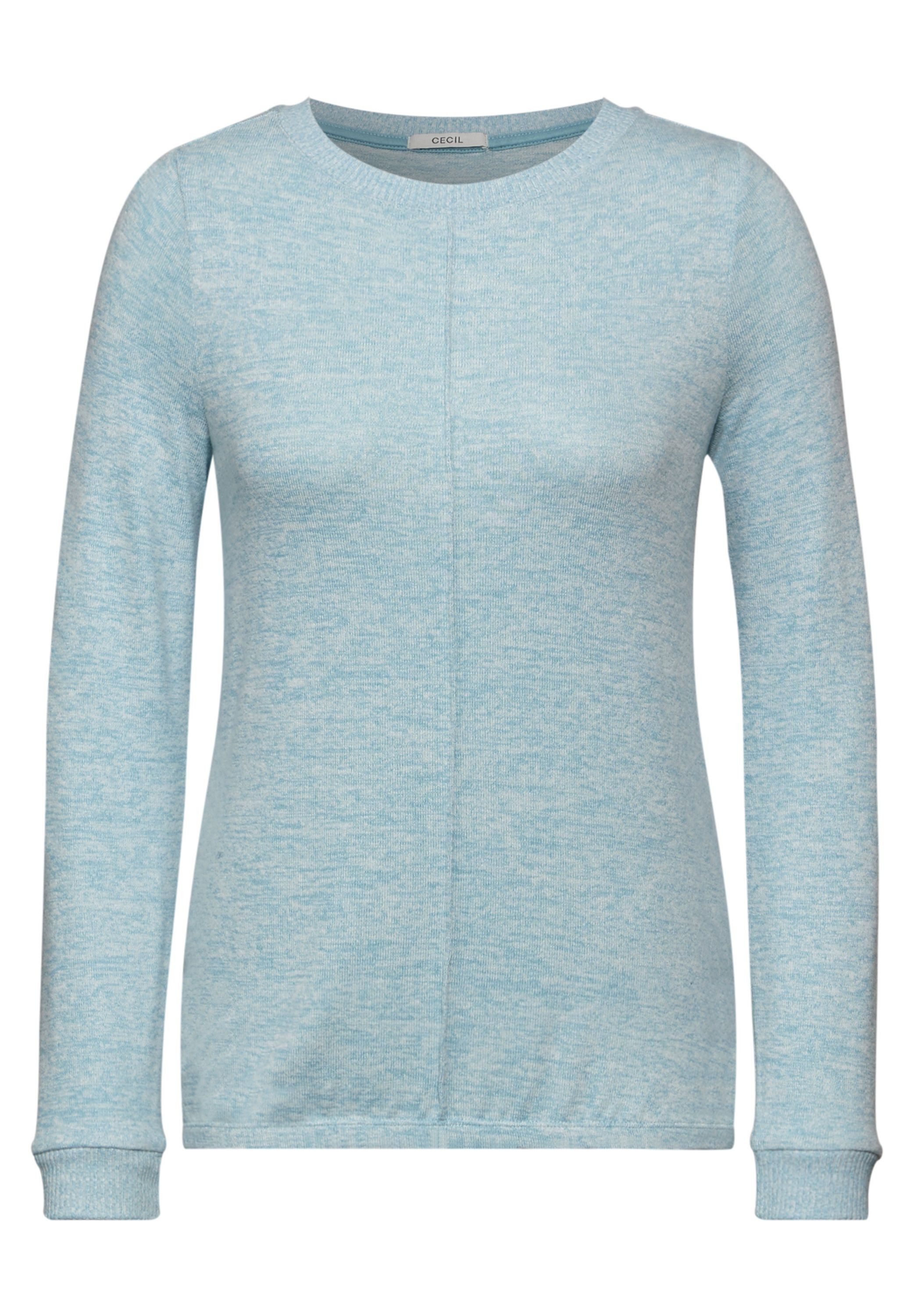 Neue Outfits lassen sich mit dem Langarmshirt von Cecil ganz leicht kombinieren. Denn das Shirt mit melierter Struktur, wertet deinen Look mit einem sportlichen Flair auf, sodass du keinen weiteren Hingucker mehr brauchst. Die langen Ärmel enden in einem Rippbündchen, das für guten Sitz sorgt. Dieses Shirt hat einen Rundhalsausschnitt und ist taillenbedeckend sowie basic geschnitten, wodurch dein Oberkörper locker umspielt wird.
