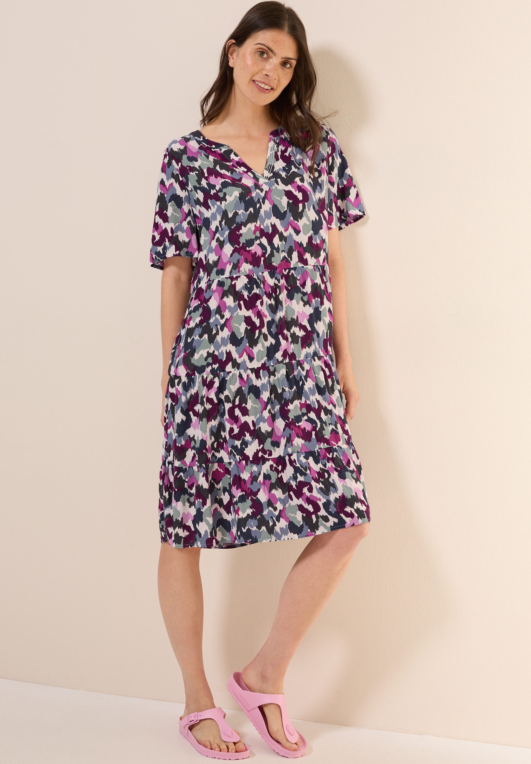 Mit dem Allover-Druck wird das kniefreie Midikleid von Cecil zum Hingucker. Der großzügige Schnitt schmeichelt jeder Figur.