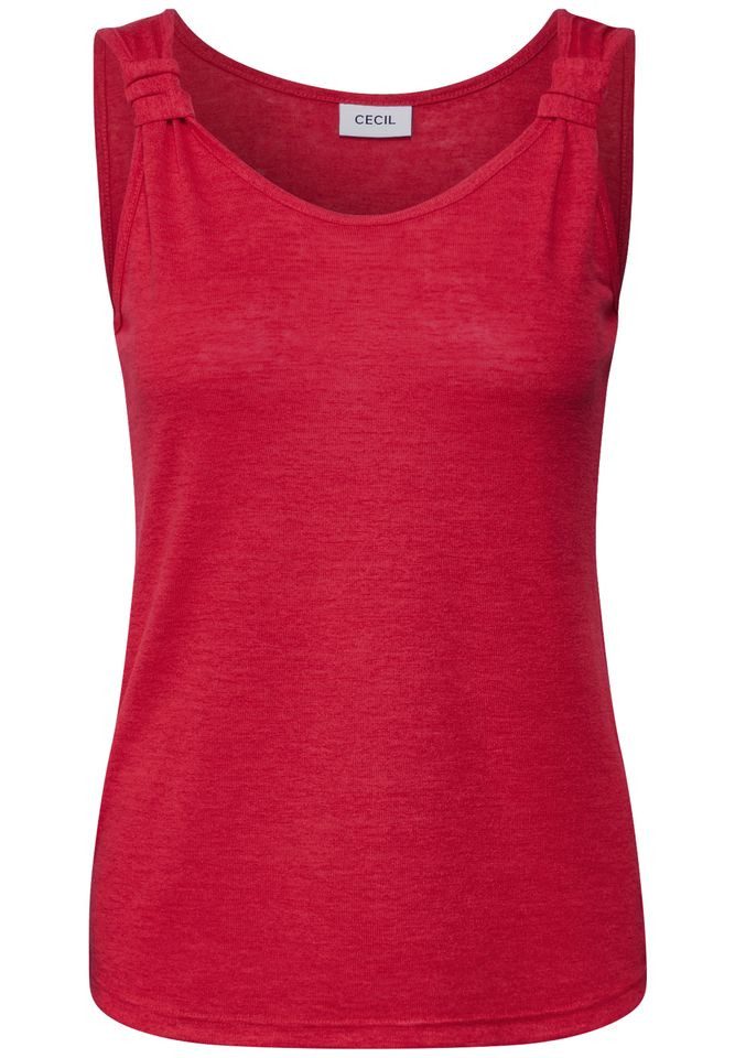 Gesucht und gefunden: Schau dir das Trägertop von Cecil mal genauer an. Dieses Top hat einen Rundhalsausschnitt und ist taillenbedeckend sowie basic geschnitten, wodurch dein Oberkörper locker umspielt wird.