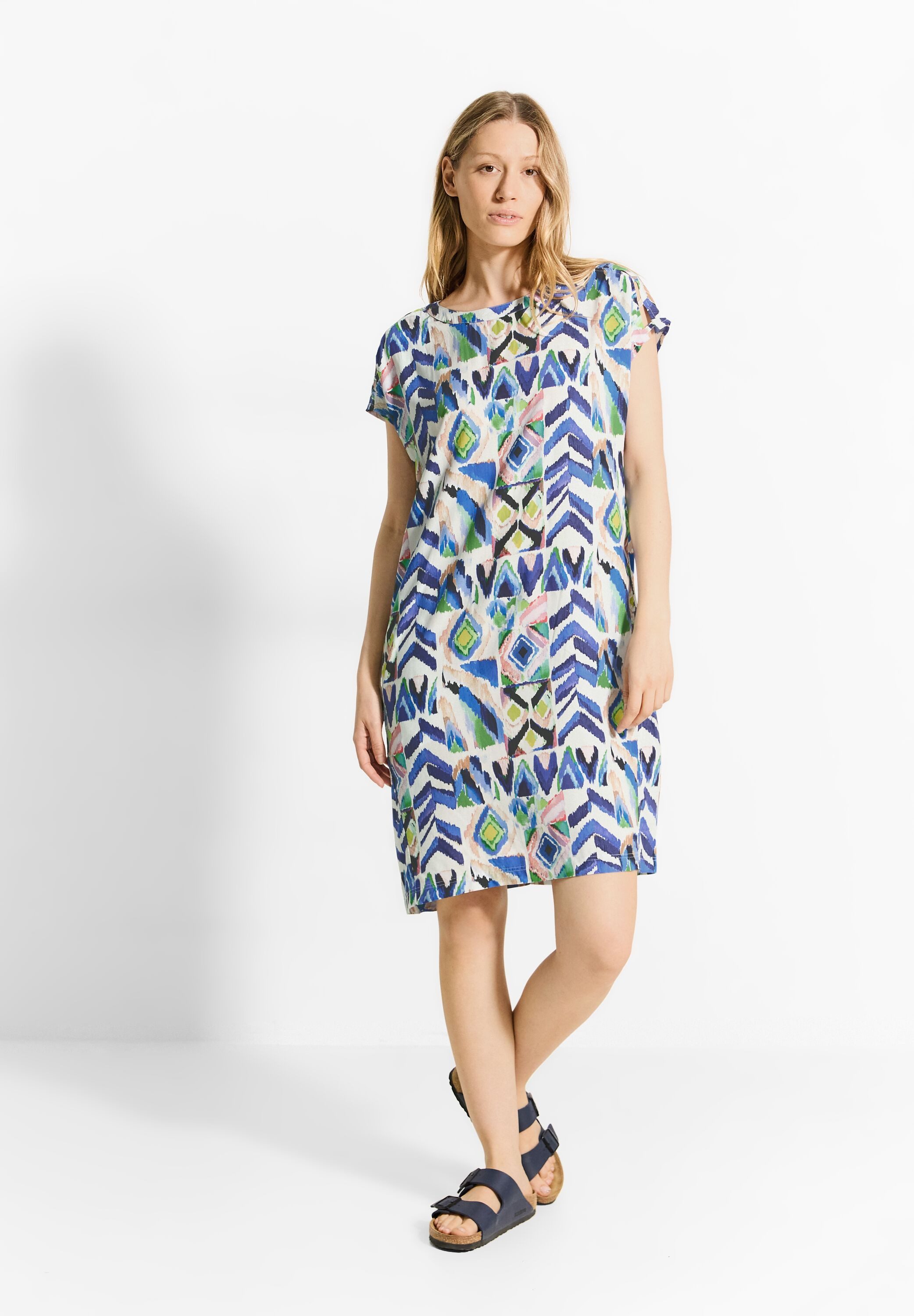 CECIL Damen Sommer Print Kleid, U-Boot Ausschnitt mit Schlitz und Knopf, Eingrifftaschen, knielang, luftige Schlitze an der Schulter. Das Sommer Print Kleid für Damen von CECIL ist ein modisches Must-have für die warme Jahreszeit. Mit seinem U-Boot Ausschnitt, Schlitz und Knopf verleiht es eine elegante Note. Die luftigen Schlitze an der Schulter verleihen dem Kleid eine besondere Raffinesse.
