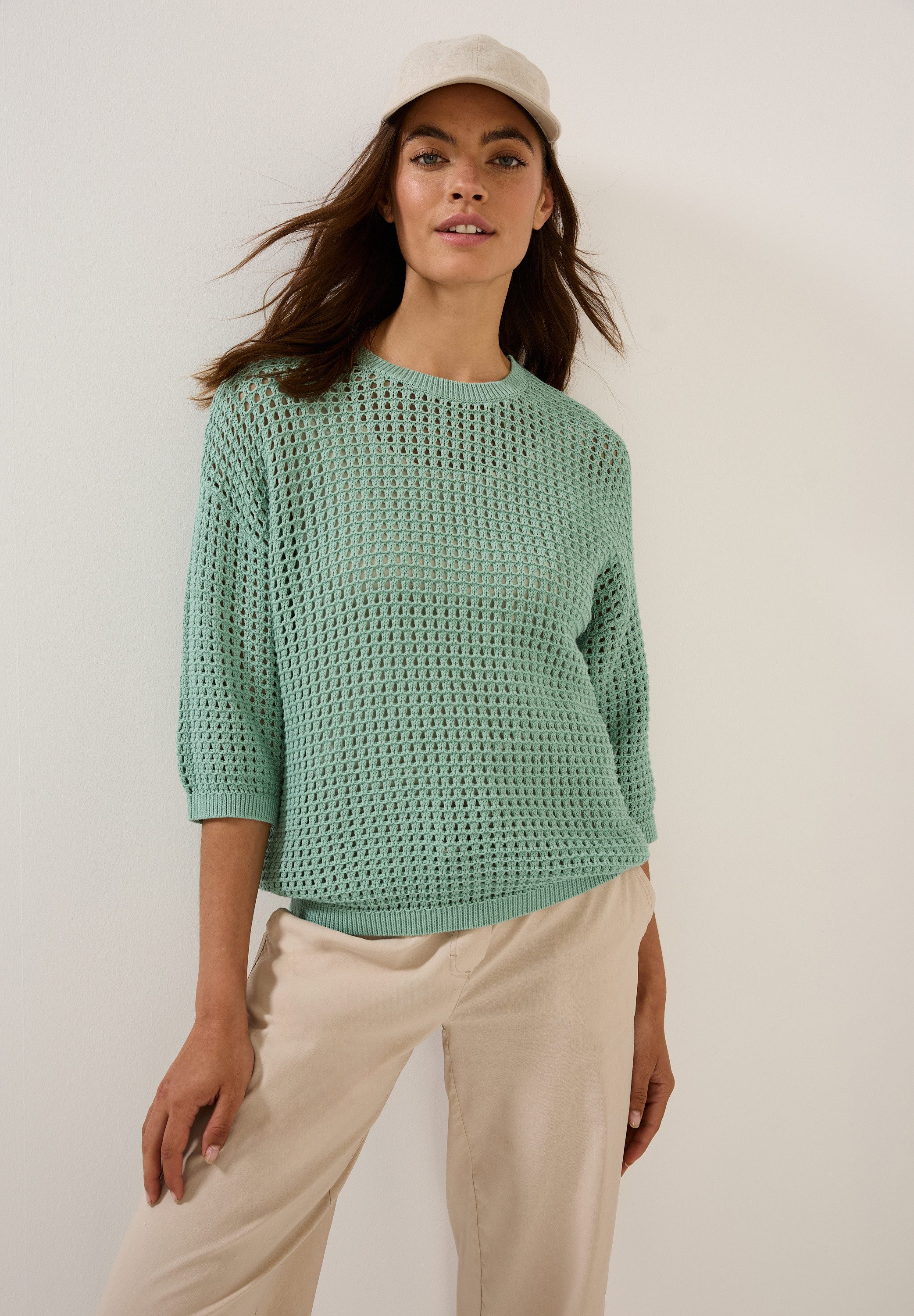 Der Strickpullover von Cecil wird dein neues Feel-good-Oberteil für zu Hause und an kalten Tagen. Die 3/4-langen Ärmel enden in einem Rippbündchen, das für guten Sitz sorgt. Dieser Pullover hat einen Rundhalsausschnitt und ist taillenbedeckend sowie basic geschnitten, sodass dein Oberkörper dezent in Szene gesetzt wird.