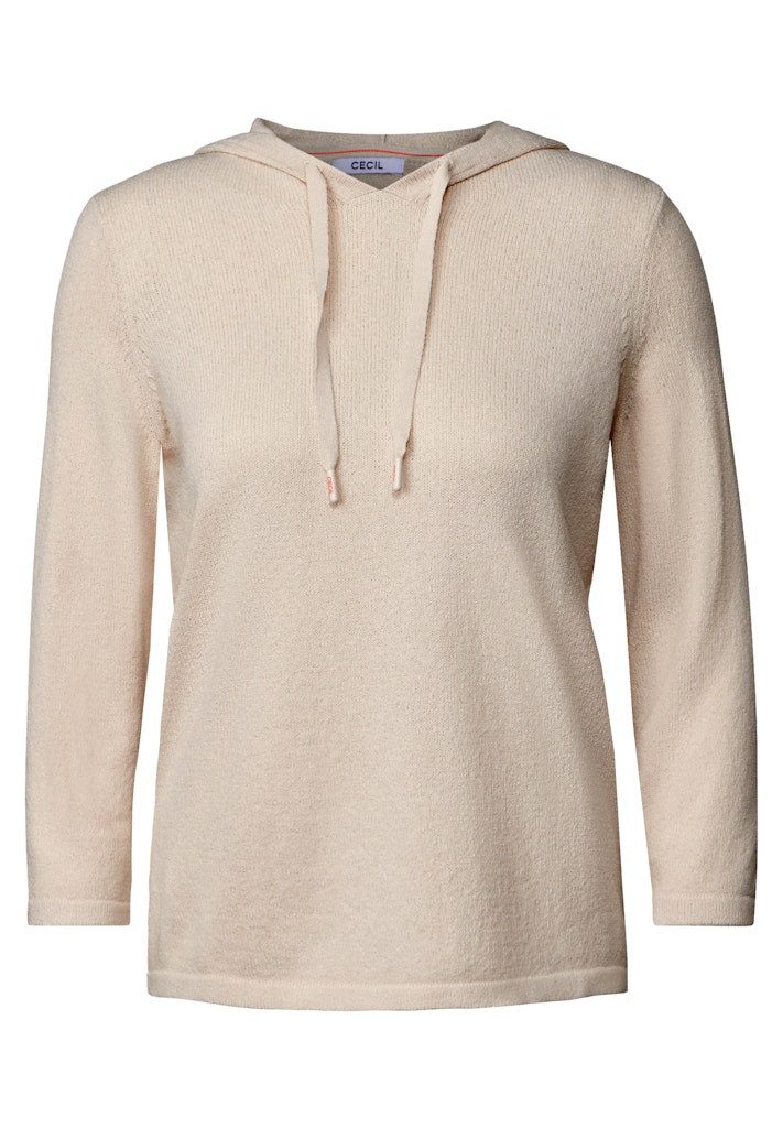 Der Strickpullover von Cecil wird dein neues Feel-good-Oberteil für zu Hause und an kalten Tagen. Eine Kapuze ist bei diesem Strickpullover angesetzt. Dieser Pullover hat einen Rundhalsausschnitt und ist hüftbedeckend sowie komfortabel geschnitten, sodass deine Bewegungsfreiheit nicht eingeschränkt wird.