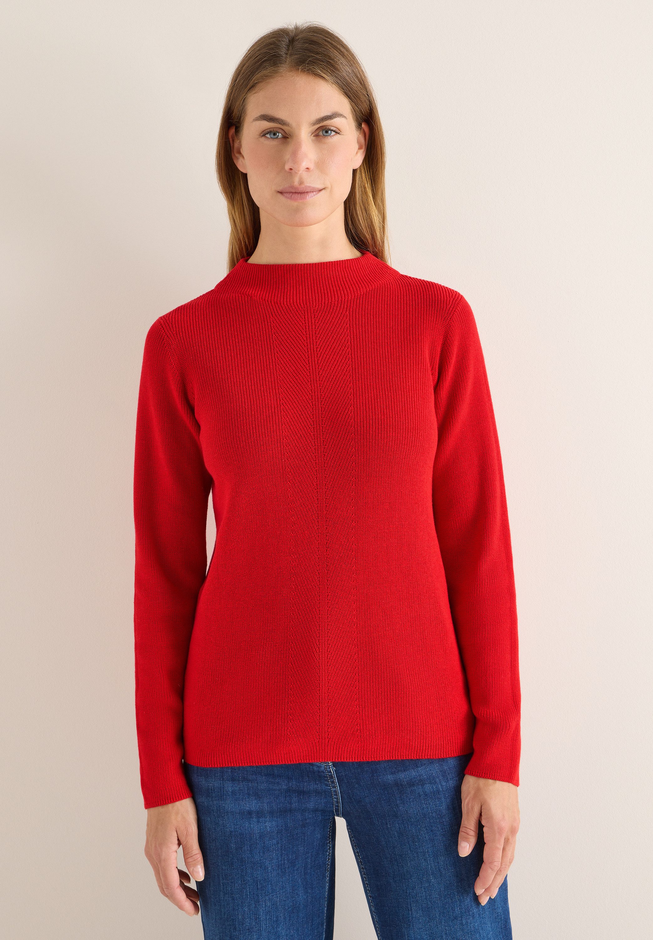 Mit dem Strickpullover von Cecil lassen sich schnell neue Outfits zusammenstellen. Der Stehkragen wird nicht umgeschlagen, liegt am Hals an und ist eine Grundlage für toughe Outfits. Dieser Pullover ist normal sowie basic geschnitten, sodass dein Oberkörper dezent in Szene gesetzt wird.