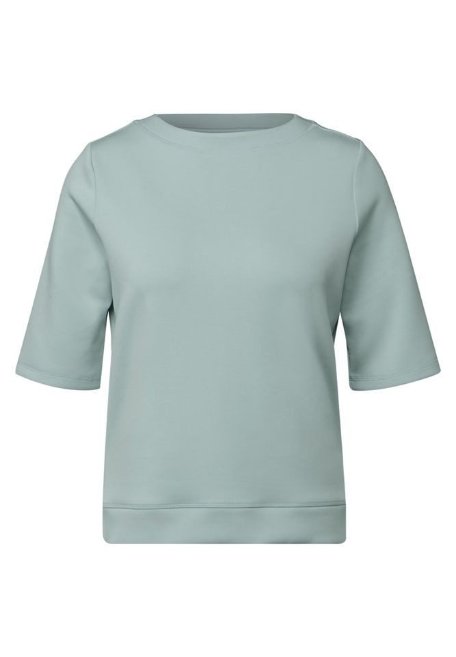 Das Kurzarm Sweatshirt von CECIL für Damen bietet dir lässigen Komfort. Der U-Boot-Ausschnitt und die seitlichen Schlitze verleihen dem Sweater eine moderne Note. Der Materialmix mit Stretchanteil sorgt für eine angenehme Passform. Sweater U-Boot-Ausschnitt Seitliche Schlitze Materialmix mit Stretchanteil