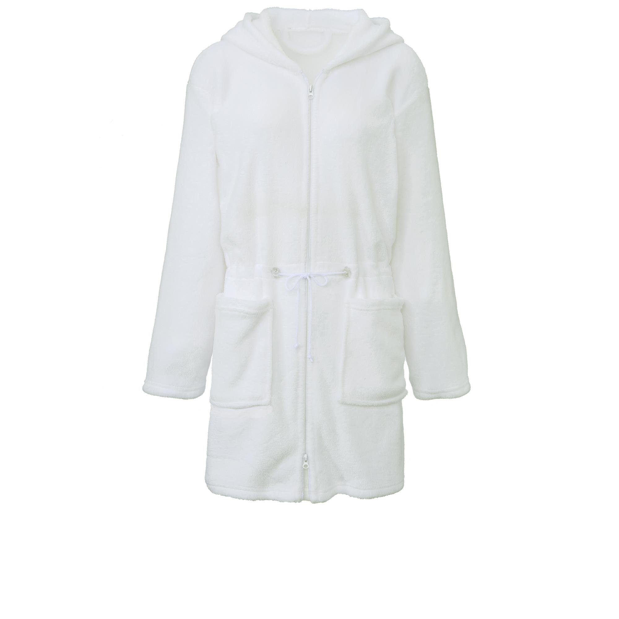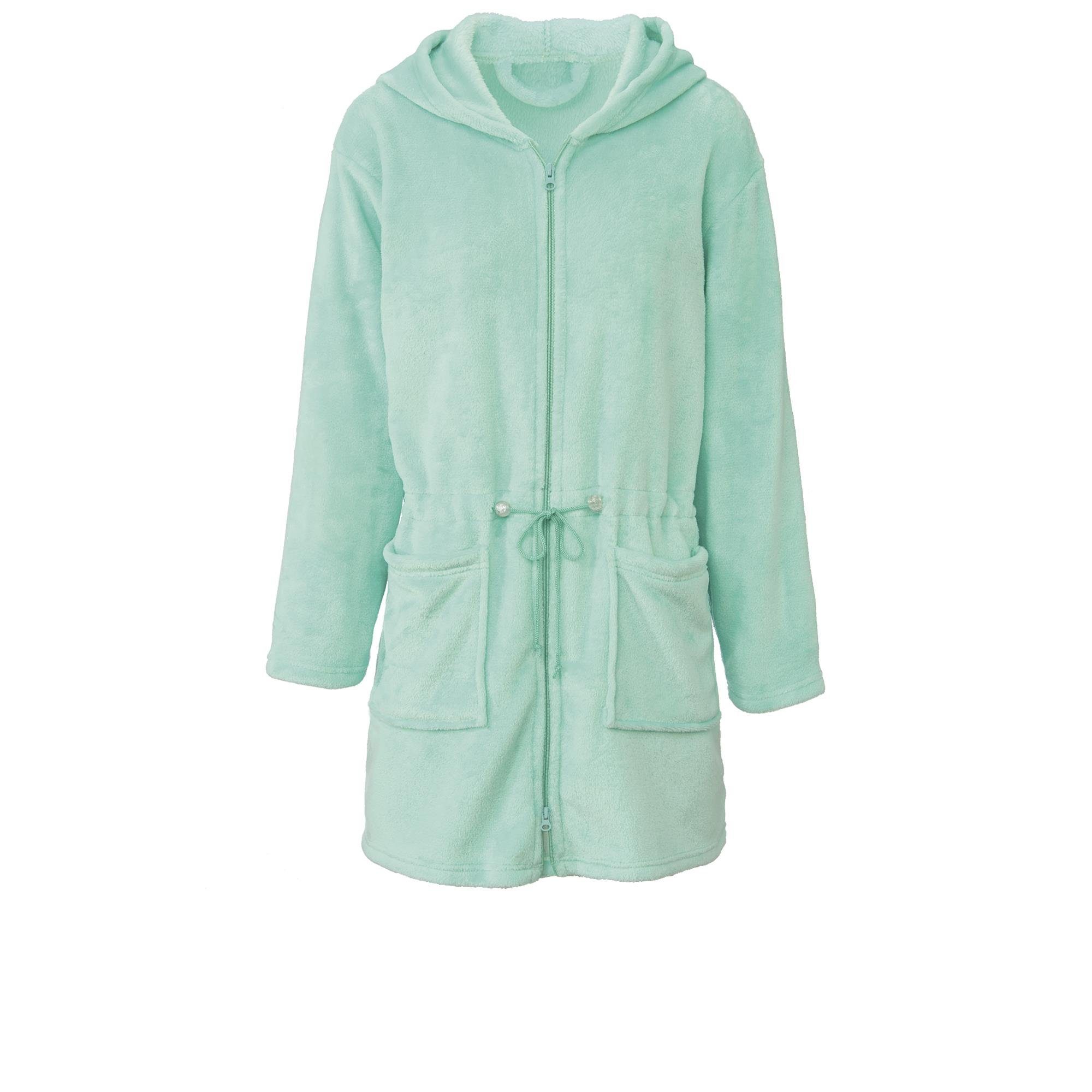 Sportlicher Frauen Morgenmantel mit kurzem Schnitt aus 100% Polyester Mikro-Flanell erhältlich in vielen modischen Farben. Die Besonderheiten des Hausmantels sind der 2-Wege Reißverschluss sowie der individuell taillierbare Tunnelzug mit Kordel und Stopper. So kann die Размер individuell angepasst werden und bietet dadurch einen eleganten und zudem angenehm leichten Tragekomfort. Außerdem hat der Kapuzenbademantel zwei aufgesetzte Taschen. Ideal auch geeignet als Reisebademantel da er platzsparend verstaut werden kann. Einfach unverzichtbar zum Reinkuscheln als gemütlicher Begleiter beim Frühstück oder zum Warmhalten beim Wellness-Besuch.
