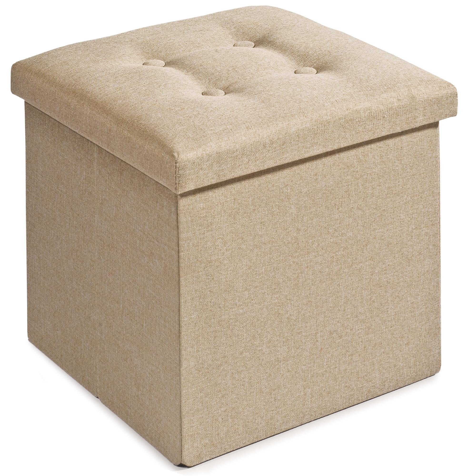 Entdecken Sie unsere trendigen Hocker mit Stauraum im zeitlosen Design für jeden Einrichtungsstil. Der Bezugstoff ist aus 100% Polyester hergestellt, der Rahmen besteht aus MDF Platten. Die faltbare Aufbewahrungsbox mit abnehmbarem Deckel ist vielseitig einsetzbar, stabil, dekorativ, sorgt für Ordnung und kann auch als Fußhocker verwendet werden.
