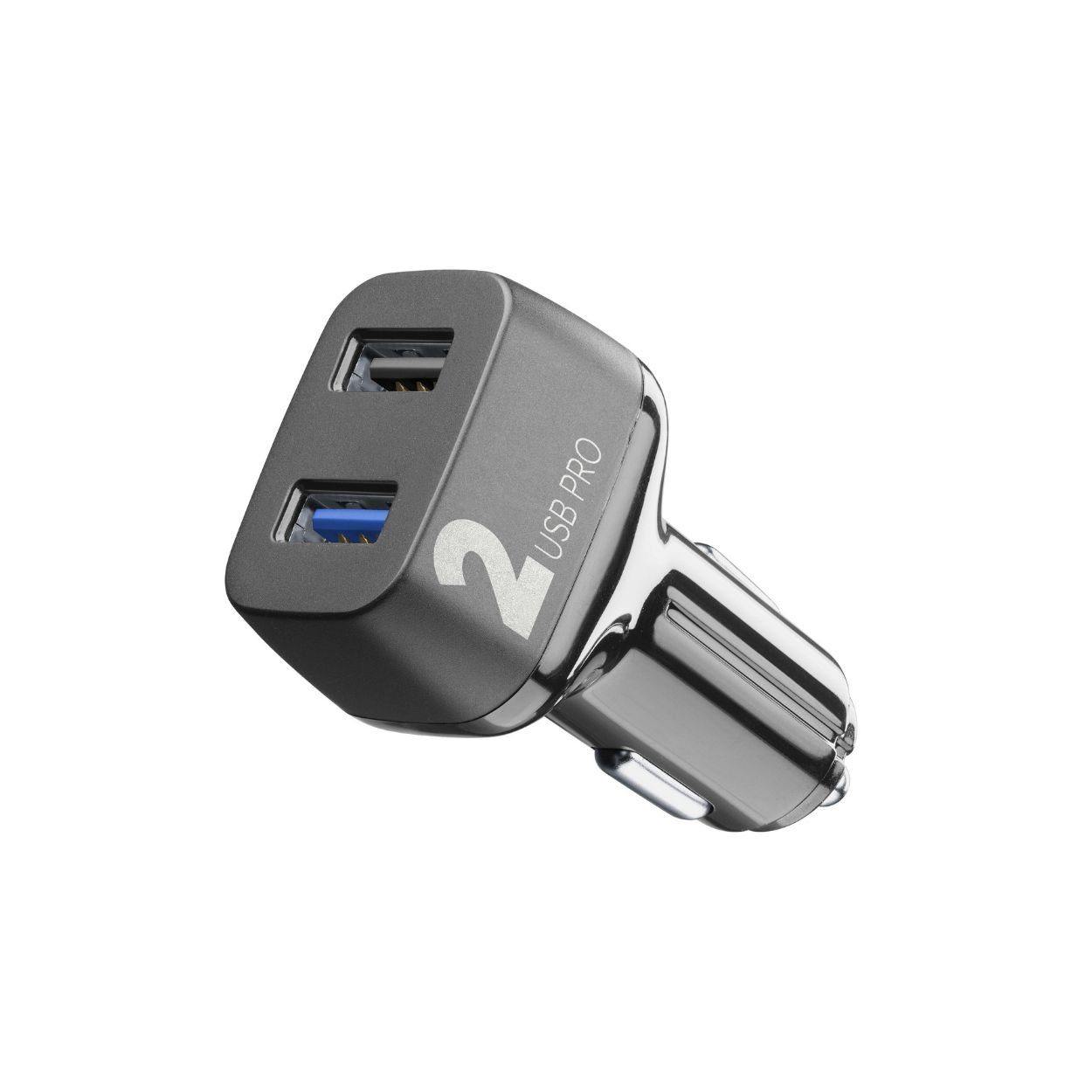 Cellularline Hochwertiger KFZ-Ladeadapter, Multipower 2 Pro, 2x USB, Quick Charge 3.0, bis zu 24W, für 12–24V Bordspannung