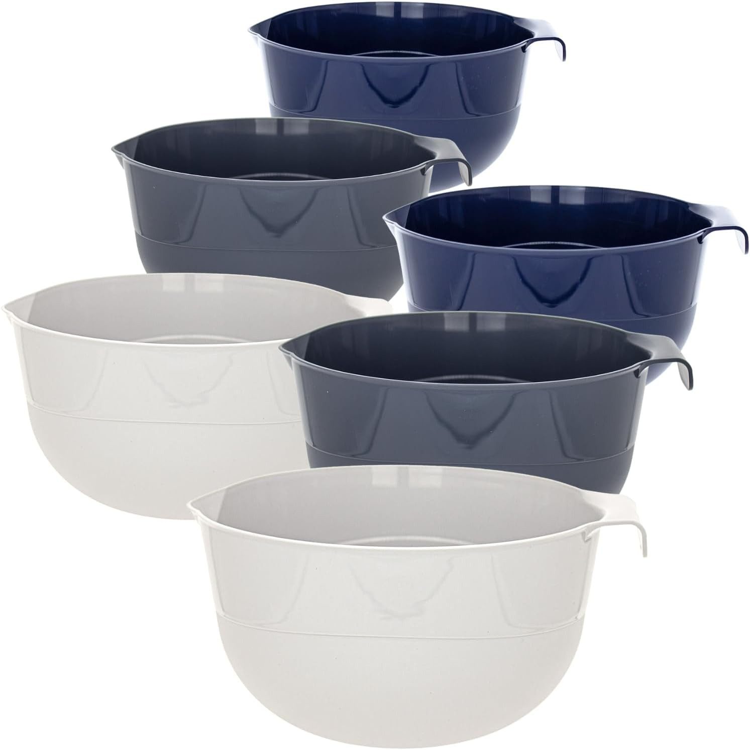 Die Serie GENF steht für funktionale Küchenhelfer mit klarem Design und praktischer Vielseitigkeit. Dieses 6-teilige Rührschüssel-Set mit je 4 Liter Volumen ist perfekt für größere Mengen – ob beim Backen, Kochen, Vorbereiten oder Servieren. Mit einem Durchmesser von 24 cm und einer Höhe von 13,5 cm bieten die Schüsseln großzügigen Platz für Teig, Salate, Marinaden oder Vorratsmischungen. Der integrierte Ausguss sorgt für sauberes und gezieltes Ausgießen – besonders praktisch für flüssige Inhalte wie Saucen oder Teig. Die leichte und bruchsichere Kunststoffstruktur macht die Schüsseln angenehm zu handhaben und langlebig im Einsatz. Dank des stapelbaren Designs lassen sie sich platzsparend verstauen – ideal für organisierte Küchen und Vorratsschränke. Das Set enthält sechs Schüsseln in den Farben Weiß, Blau und Grau – jeweils doppelt – für einfache Sortierung und stilvolle Optik. Ob für den täglichen Gebrauch, als Backzubehör oder für die Vorratshaltung – die GENF Flexischüsseln sind ein praktisches und elegantes Küchen-Set.