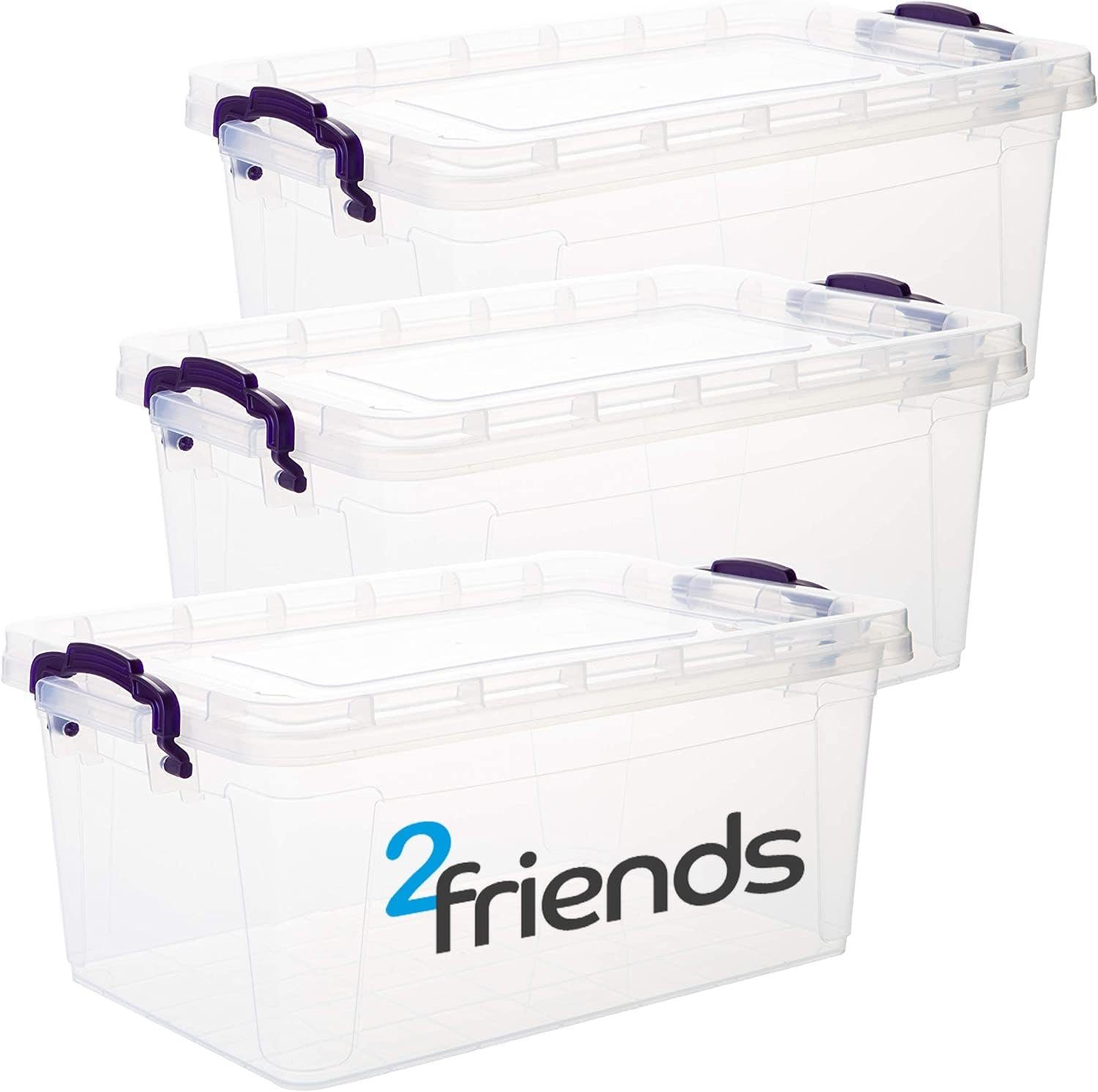 Lieferumfang | 3 5L Aufbewahrungsboxen Transparent mit farbigen Deckel |