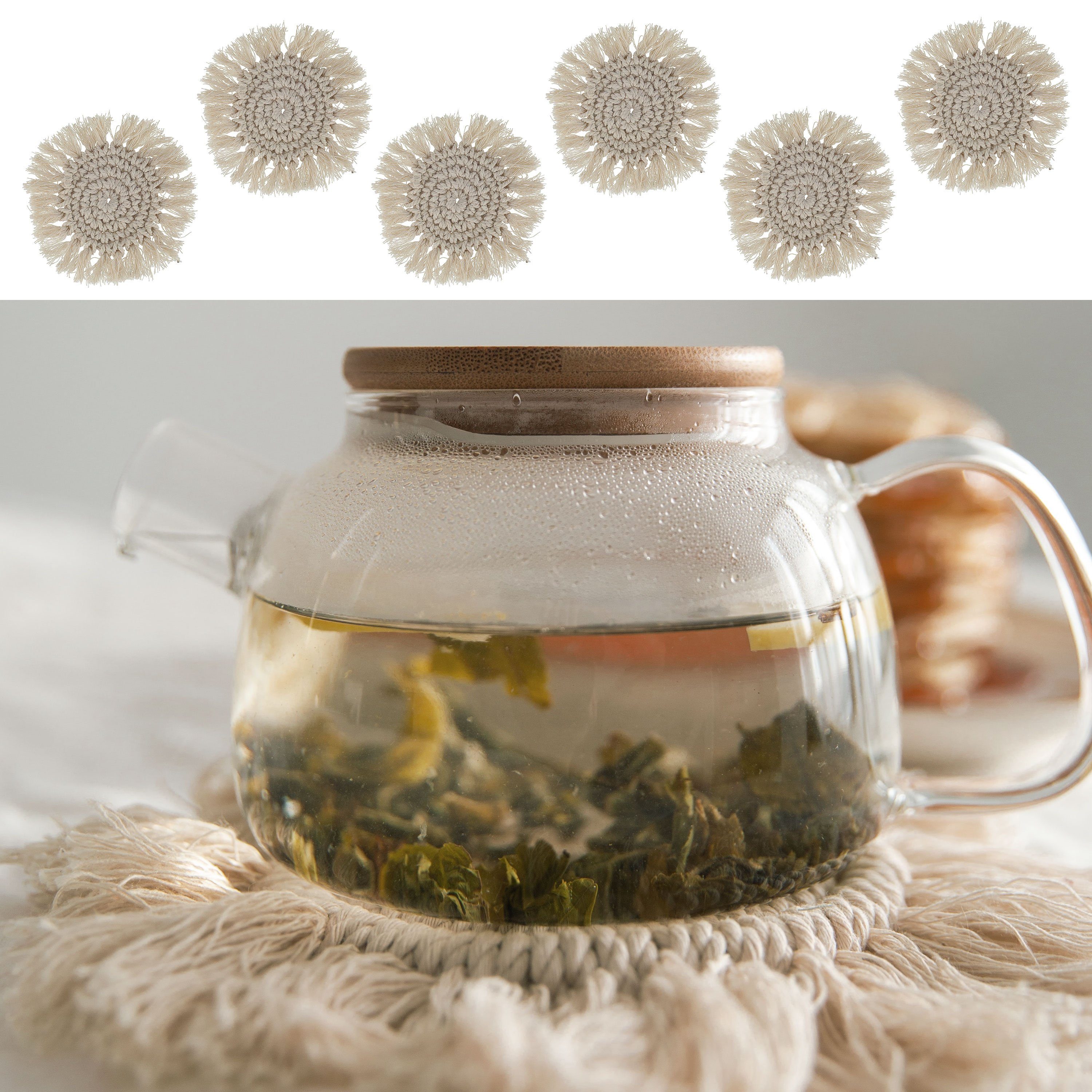 Die Makramee Untersetzer eignen sich perfekt als Accessoire für den Tisch oder die Kommode und schenken dem Zuhause einen Hauch Boho Flair.