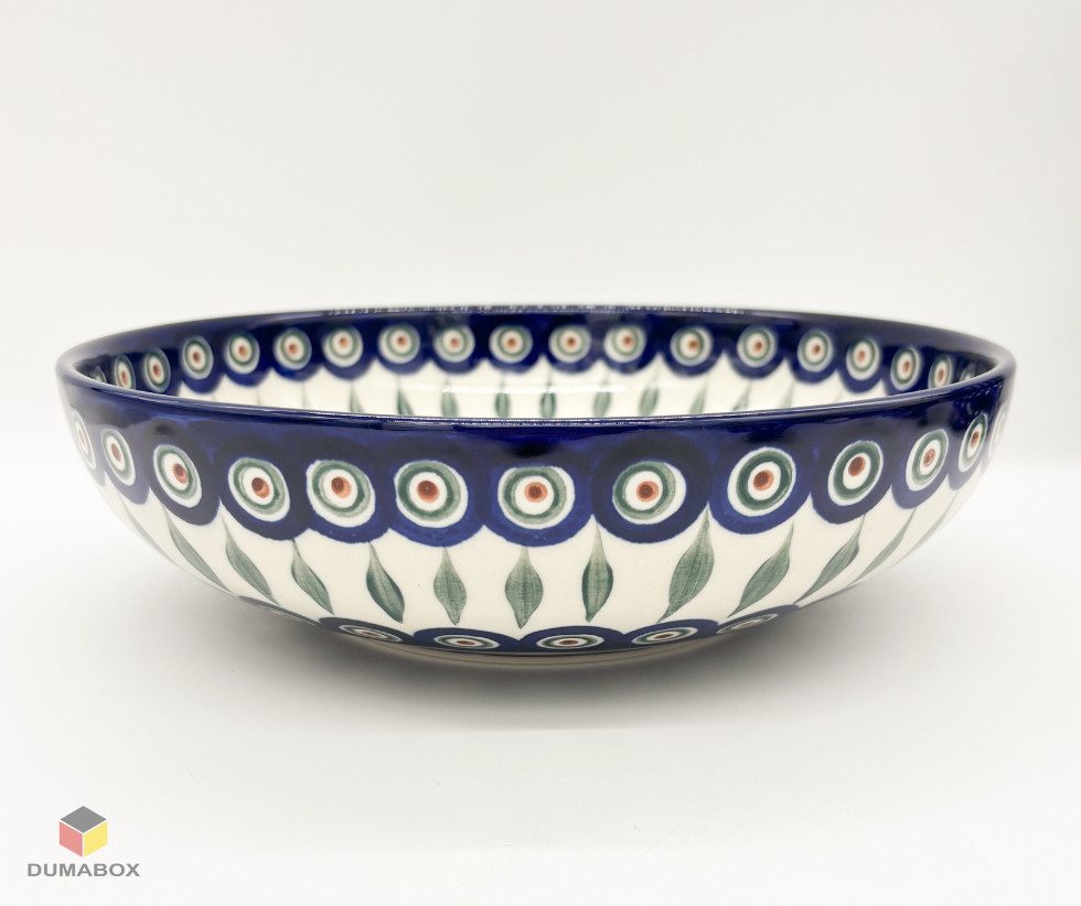 Diese handgefertigte Servierschale aus traditioneller Bunzlauer Keramik (Bolesławiec-Keramik) besticht durch ihre hochwertige Verarbeitung und das charakteristische Stempelmuster, das in liebevoller Handarbeit aufgetragen wird. Jede Schale ist ein Unikat – gefertigt nach jahrhundertealter polnischer Handwerkstradition.