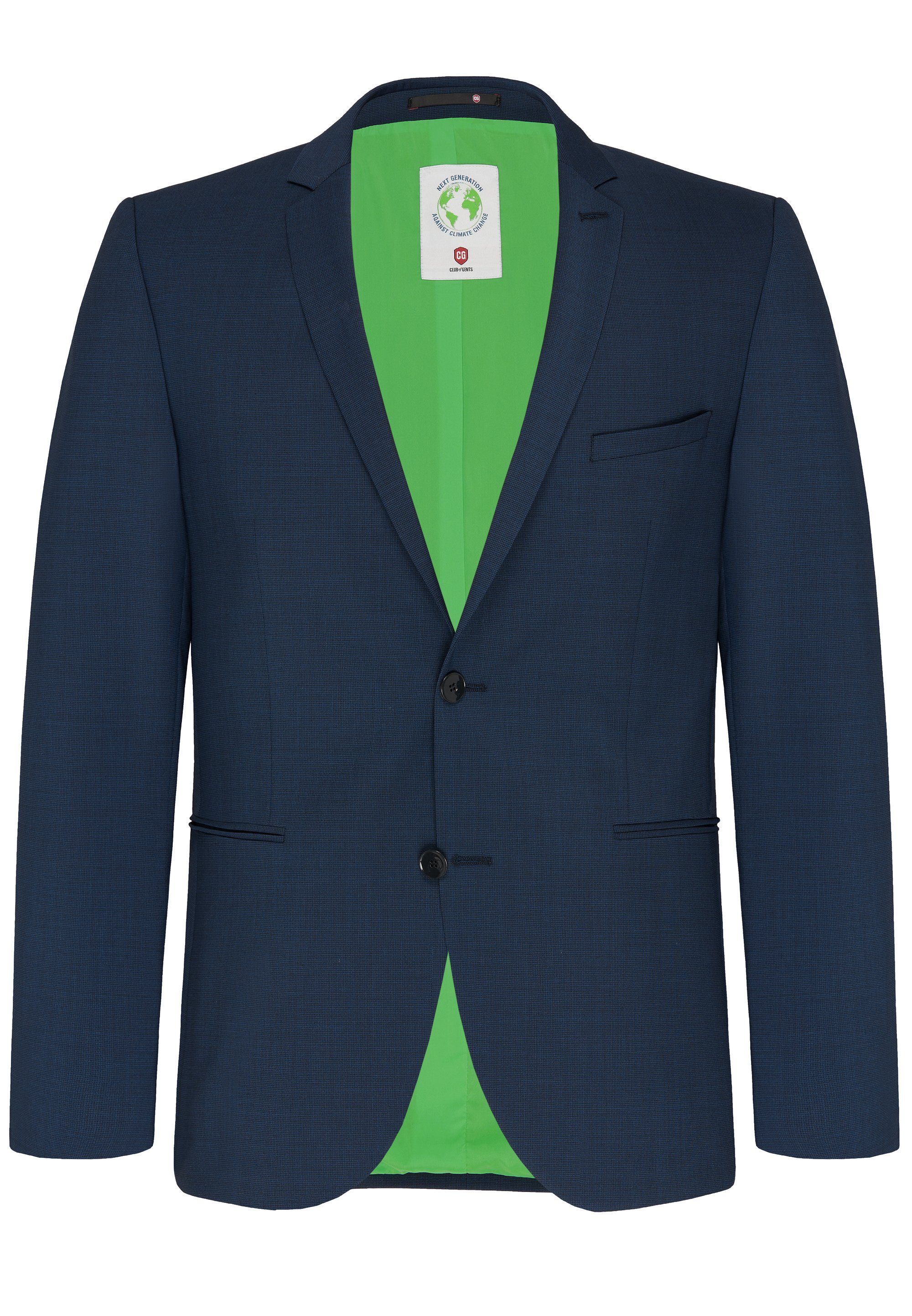 Zusammen mit der Hose CG Ice (90-147S1_430043) ist der Baukasten-Anzug komplett. #SUITSFORTHENEXTGENERATION NEXT GENERATION GEGEN DEN KLIMAWANDEL PLASTIKMÜLL: DER TREIBER DES KLIMAWANDELS Müllstrudel in den Ozeanen, verschmutzte Strände, Tiere, die Plastik fressen und qualvoll daran sterben – die Folgen von übermäßigem Plastik sind bekannt. Nicht nur die Herstellung und Nutzung von Plastik stellen ein Problem dar, sondern auch dessen Entsorgung. In Deutschland und Europa ist die Recyclingquote nach wie vor niedrig, da viele Materialien aufgrund bestimmter Vorgaben nicht wiederverwertet werden können. Große Mengen an Müll werden ins Ausland exportiert, wo weniger strenge Auflagen gelten. Dort wird er oft verbrannt oder gelangt ins Meer. NEUER ANZUG ZUM SCHUTZ DER UMWELT Die Brand CG – CLUB of GENTS hat es sich zur Aufgabe gemacht, Plastikmüll wiederzuverwenden und damit einen wertvollen Beitrag zum Schutz des Planeten für kommende Generationen zu leisten. Der neue Klima-Anzug besteht aus 80 % recyceltem Polyester. Mit seinem blauen Oberstoff und dem grünen Innenfutter setzt er ein klares Statement: Next Generation against Climate Change. Auch du unterstützt damit den Kampf gegen den Klimawandel.