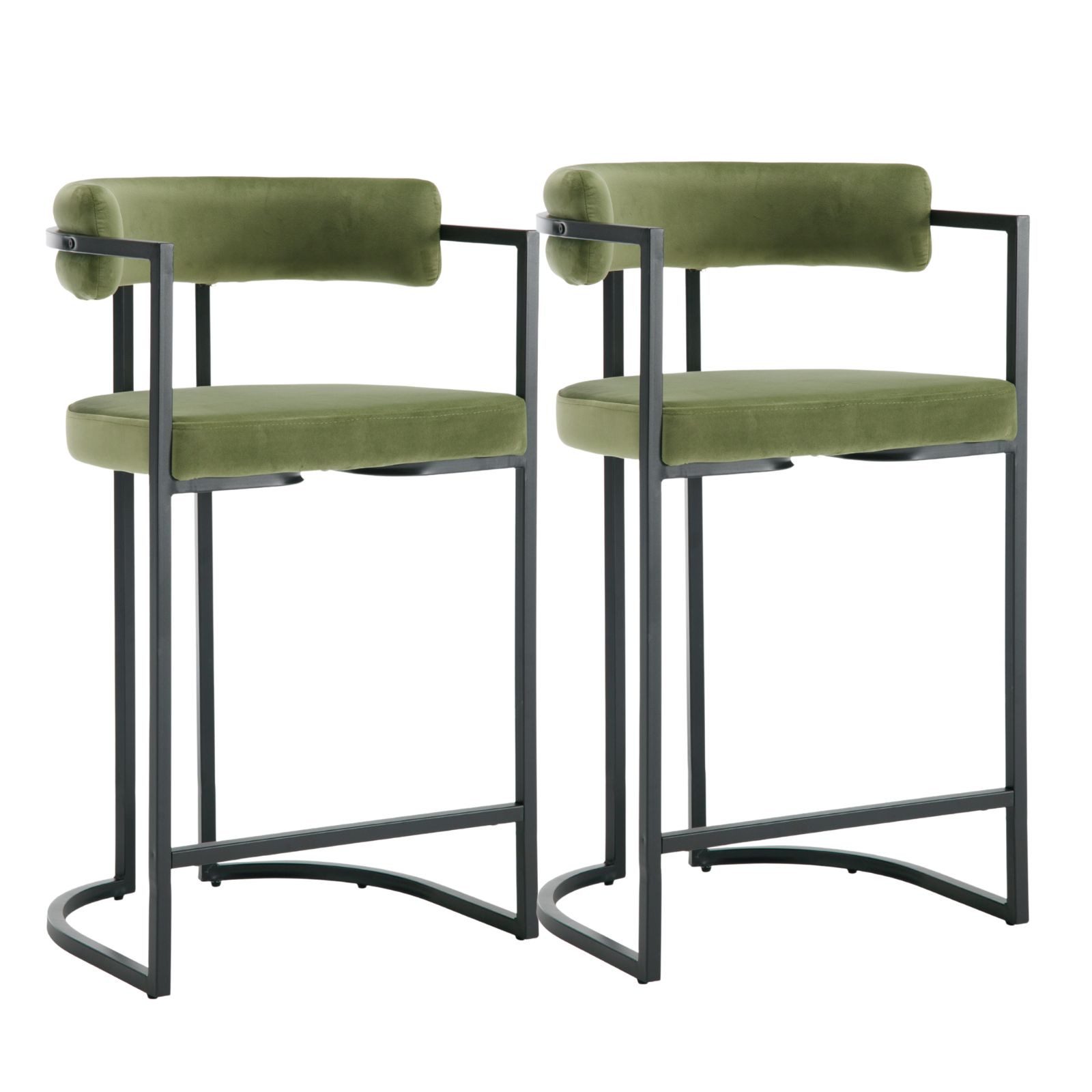 Dieser elegante Barhocker in Grün/Grau überzeugt mit einem edlen Samtbezug, der für samtiges Sitzgefühl und glamouröse Optik sorgt. Die geschwungene Rückenlehne und Armlehnen bieten entspannten Komfort, während das stabile schwarze Metallgestell modernen Industriecharme vermittelt. Er ist mit 66 cm Sitzhöhe ideal für Kücheninseln oder Hausbars (passend zu Thekenhöhen von 86–92 cm). Der Barhocker lässt sich einfach montieren und ist durch den pflegeleichten Samt alltagstauglich – perfekt für stilvolles Genießen!