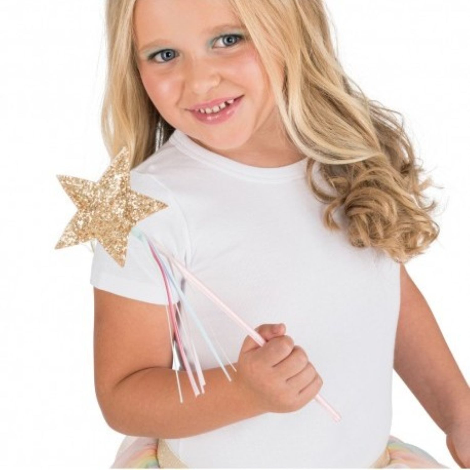 Glitzernder Feenstab mit goldenem Stern – ideal für kleine Zauberfeen, Sternenprinzessinnen und magische Rollenspiele aller Art.