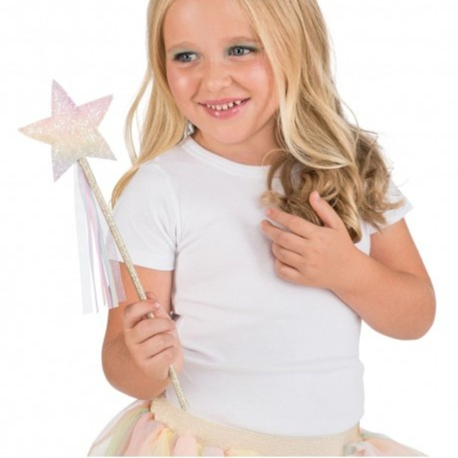 Glitzernder Feenstab mit pastellfarbenem Stern – ideal für kleine Zauberfeen, Sternenprinzessinnen und magische Rollenspiele aller Art.