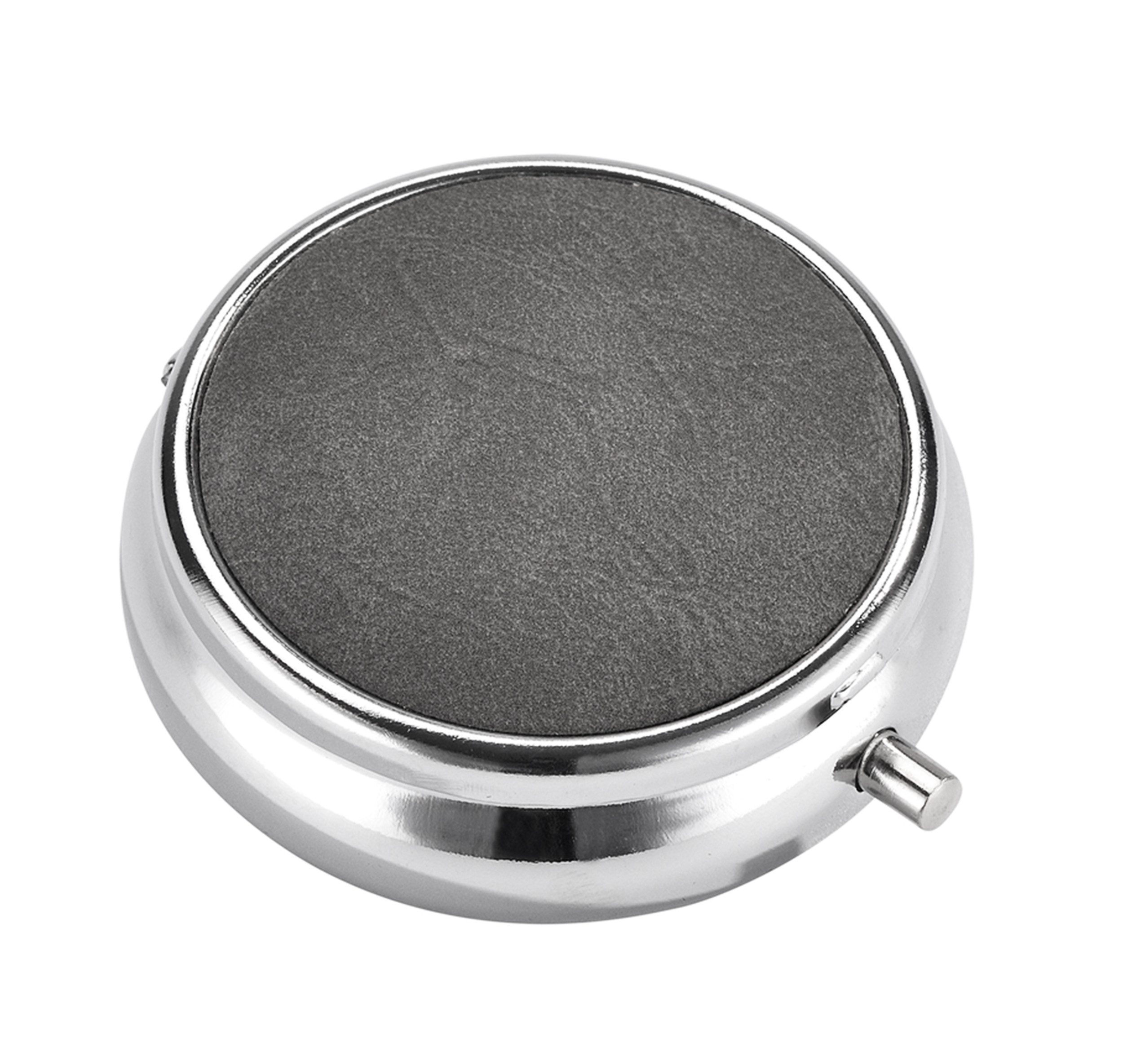 Aschenbecher Taschen ASCHENBECHER "Leder" Ø5cm mit Deckel aus Metall 72 (Grau)