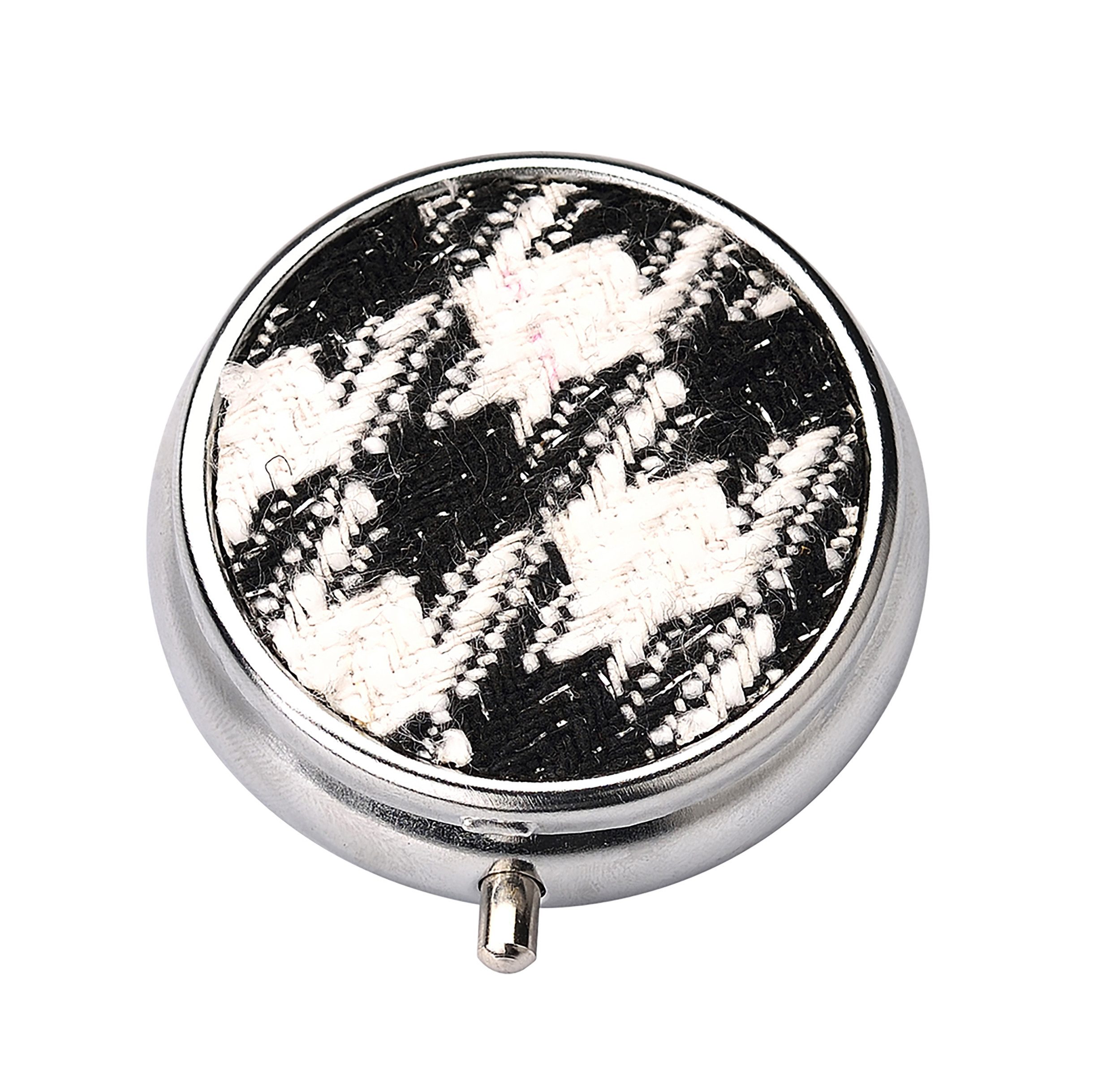 Produkteigenschaften: Design: edler Tweed-Look mit runder Metallform – stilvoll & diskret Klappbare Ablagefläche: dient als kleine Zigarettenablage – besonders praktisch unterwegs Funktion: sicher verschließbar – schützt vor Gerüchen & Ascheresten Kompakt: ca. 7 cm Durchmesser, 1,9 cm Höhe – passt in jede Tasche Pflegeleicht: einfach zu reinigen und langlebig
