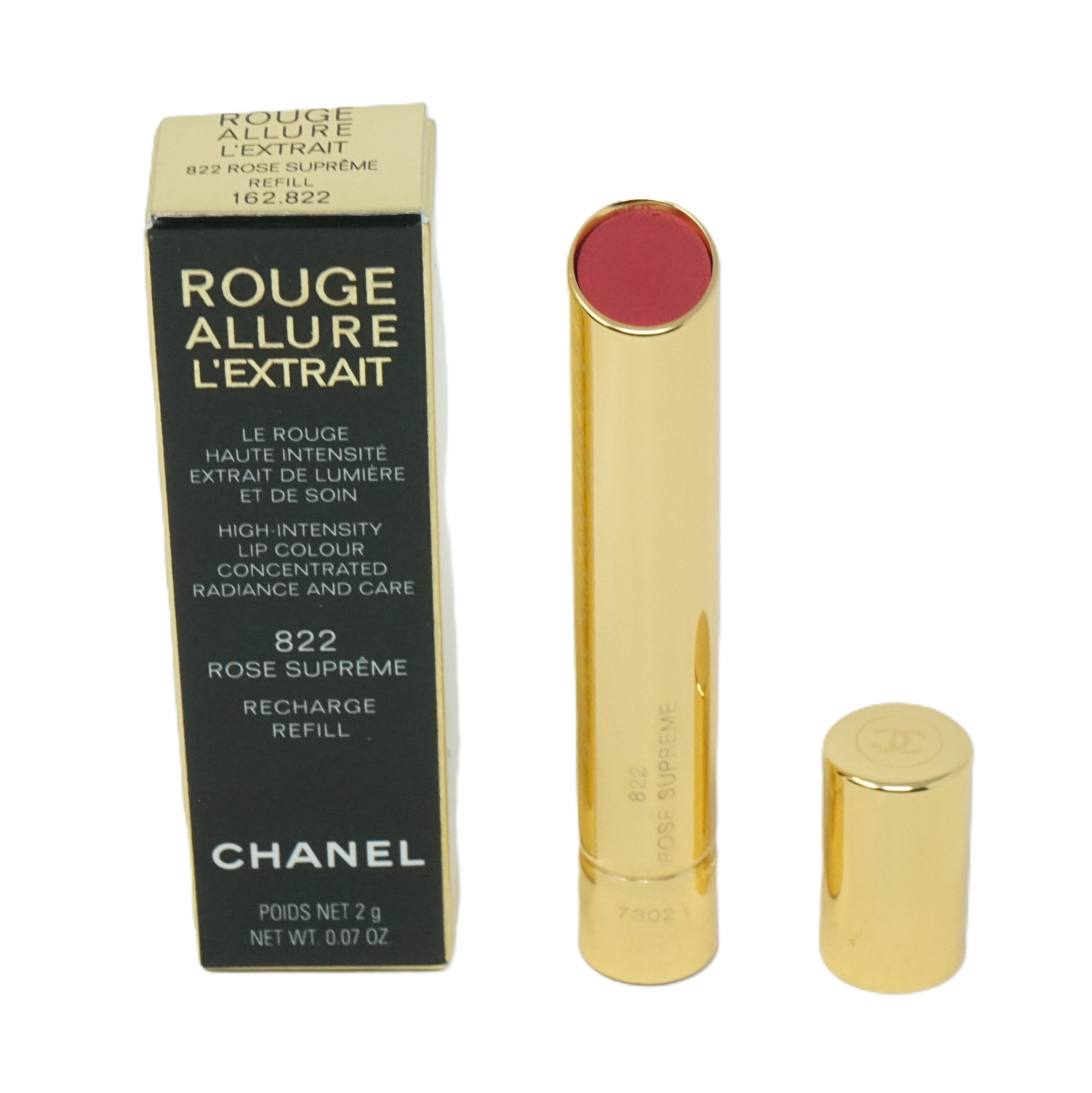 Chanel Rouge Allure L'Extrait 822 Rose Suprême ist ein sanftes aber intensives Rosé das durch seine feminine Eleganz überzeugt Die seidige Formel sorgt für ein angenehmes Tragegefühl und ein gleichmäßiges Ergebnis
