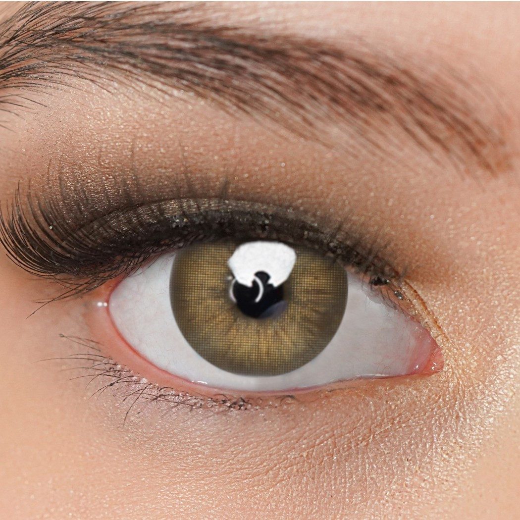 Je nach eigener Augenfarbe wirken die Linsen ein wenig unterschiedlich Das Model auf den Bildern hat ohne Linsen braune Augen. Weiche Kontaktlinsen