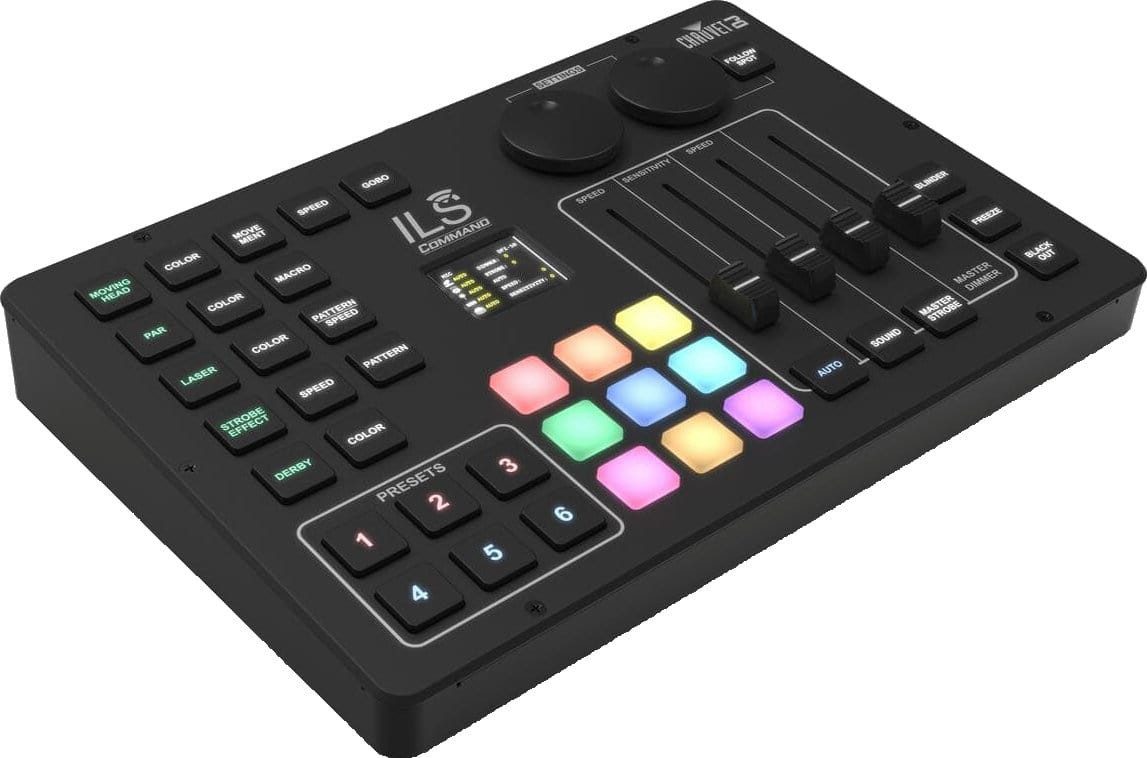 Mit ILS Command, einem leistungsstarken Pult, mit dem jedes ILS-fähige Produkt programmiert werden kann, steht Dir das ILS-Universum zur Verfügung. Dieser Hardware-Controller verfügt über einen integrierten D-Fi-Sender, mit dem eine unbegrenzte Anzahl ILS-kompatibler Geräte drahtlos gesteuert werden können.