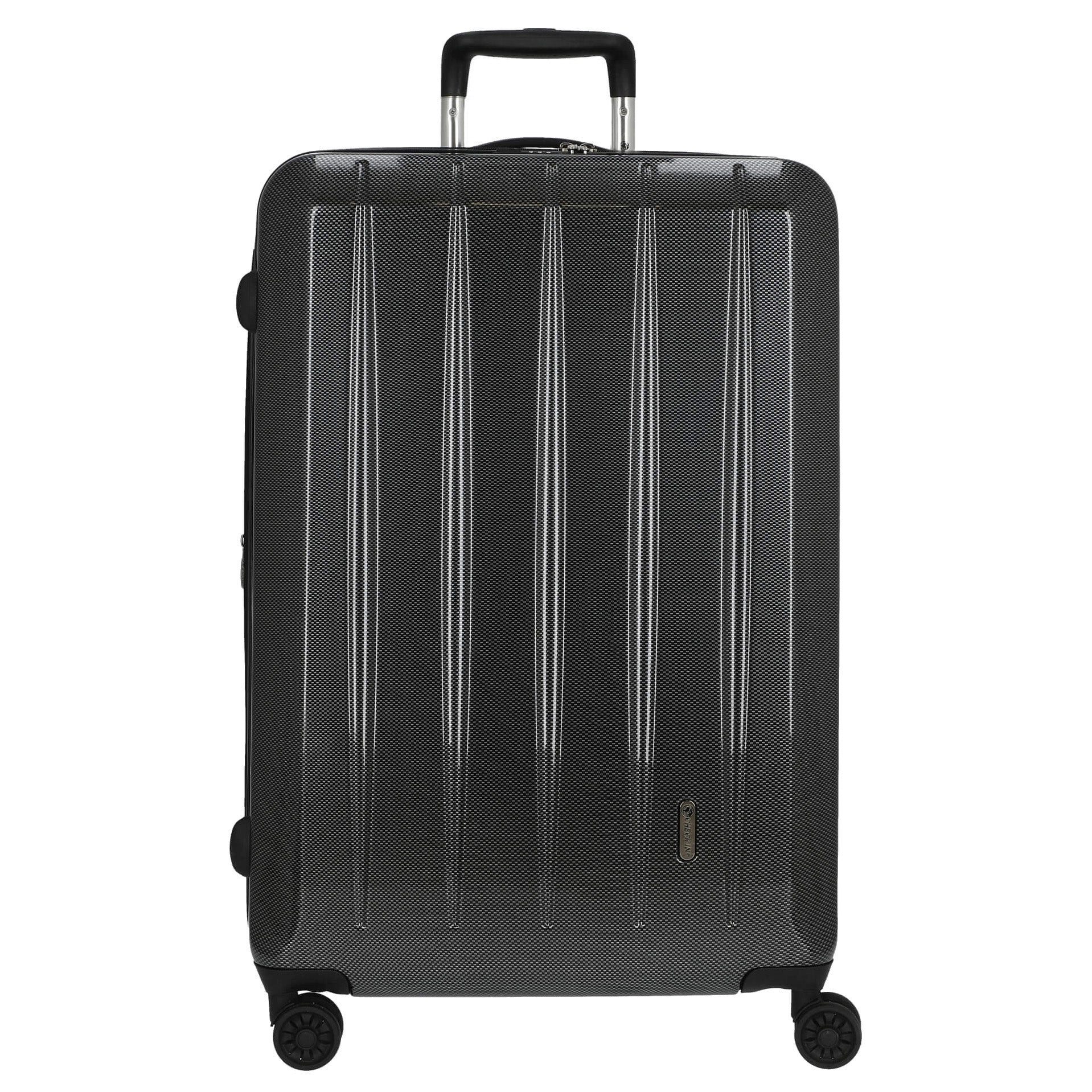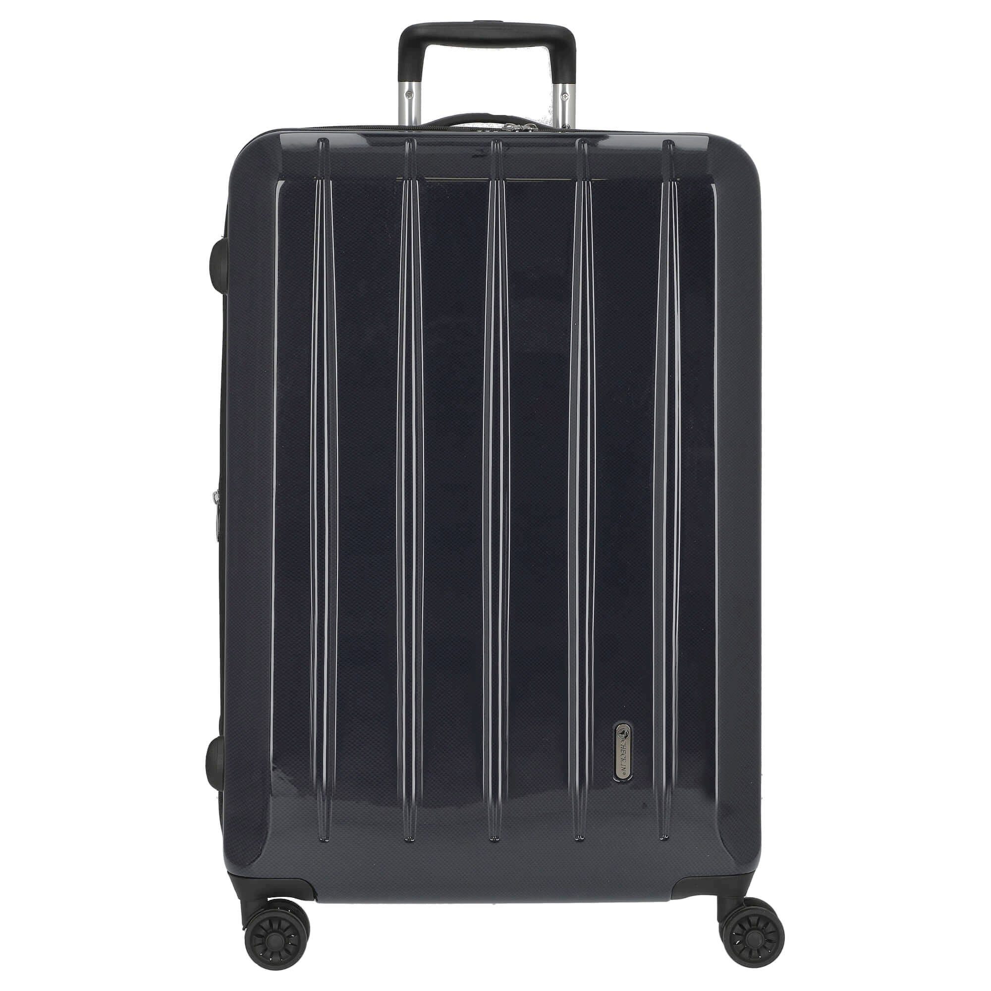 Entdecken Sie den CHECK.IN London 2.0 - 4-Rollen-Trolley in der eleganten Farbe carbon champagner. Dieses stilvolle Gepäckstück vereint exklusives Design mit durchdachter Funktionalität und ist der ideale Begleiter für anspruchsvolle Reisende. Außenmerkmale: * Robustes Gehäuse aus einem hochwertigen ABS/Polycarbonat-Materialmix, das Langlebigkeit und Widerstandsfähigkeit garantiert. * Arretierbares und versenkbares Aluminium-Druckknopf-Trolleysystem für bequemes Handling. * 4 Zwillingsrollen mit 360°-Leichtlauf-Fahrwerk, die müheloses Manövrieren ermöglichen. * Inklusive TSA-Zahlenkombinationsschloss für zusätzliche Sicherheit auf Reisen. Innenausstattung: * Geräumiger Innenraum mit praktischem Raumteiler und Netzfächern, die für Ordnung und Übersicht sorgen. * Beidseitige Packmöglichkeiten für flexibles und effizientes Packen. * Zusätzlicher Reißverschluss für die Größen L und XL, der ca. 10% mehr Packvolumen bietet. Mit einem Gewicht von nur 4,30 Kilogramm und einem beeindruckenden Volumen von 110 Litern ist dieser Trolley nicht nur funktional, sondern auch ein echter Blickfang. Erleben Sie die perfekte Kombination aus Stil und Praktikabilität auf Ihren Reisen.