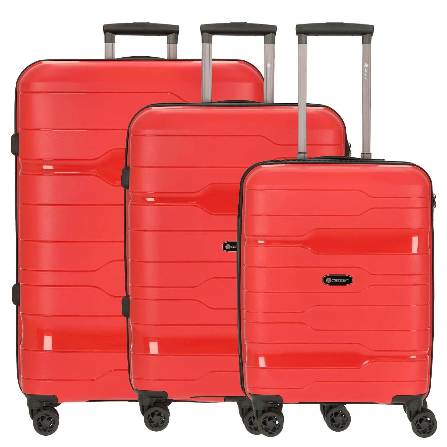 Entdecken Sie das CHECK.IN Memphis Trolley-Set in einem lebhaften Rot, das nicht nur durch sein exklusives Design, sondern auch durch seine Funktionalität besticht. Dieses 3-teilige Set ist der ideale Begleiter für jede Reise und überzeugt durch seine robuste Bauweise und durchdachte Ausstattung. Außenmerkmale: * Hochwertige Polypropylen-Schale für maximale Stabilität und Widerstandsfähigkeit * Arretierbares Aluminium-Druckknopf-Trolleysystem für ein müheloses Handling * 4 Zwillingsrollen mit 360°-Funktion für einen mühelosen Transport * Inklusive TSA-Zahlenkombinationsschloss für zusätzliche Sicherheit Innenausstattung: * Praktischer Raumteiler und Packgurt für eine optimale Organisation des Inhalts * Beidseitige Packmöglichkeit für flexibles Packen und einfaches Entnehmen Das Set umfasst: * Kabinentrolley: 55 x 40 x 20 cm / 36 Liter / 2,7 kg * Mittlerer Trolley: 67 x 47 x 25 cm / 69 Liter / 3,6 kg * Großer Trolley: 76 x 52 x 28 cm / 98 Liter / 4,5 kg Mit einem Gesamtvolumen von 203 Litern bietet dieses Trolley-Set genügend Platz für all Ihre Reiseutensilien. Perfekt für Kurztrips oder längere Reisen, vereint es Stil und Funktionalität auf beeindruckende Weise.