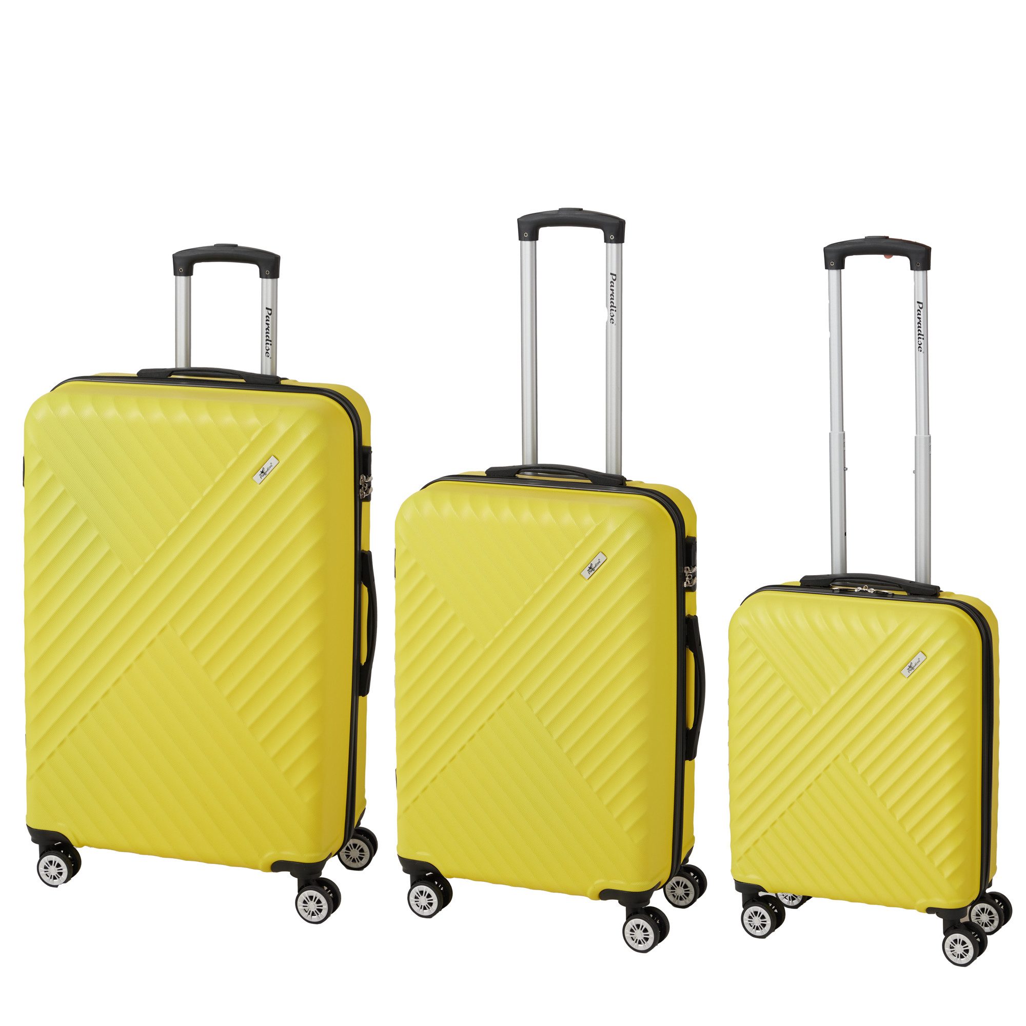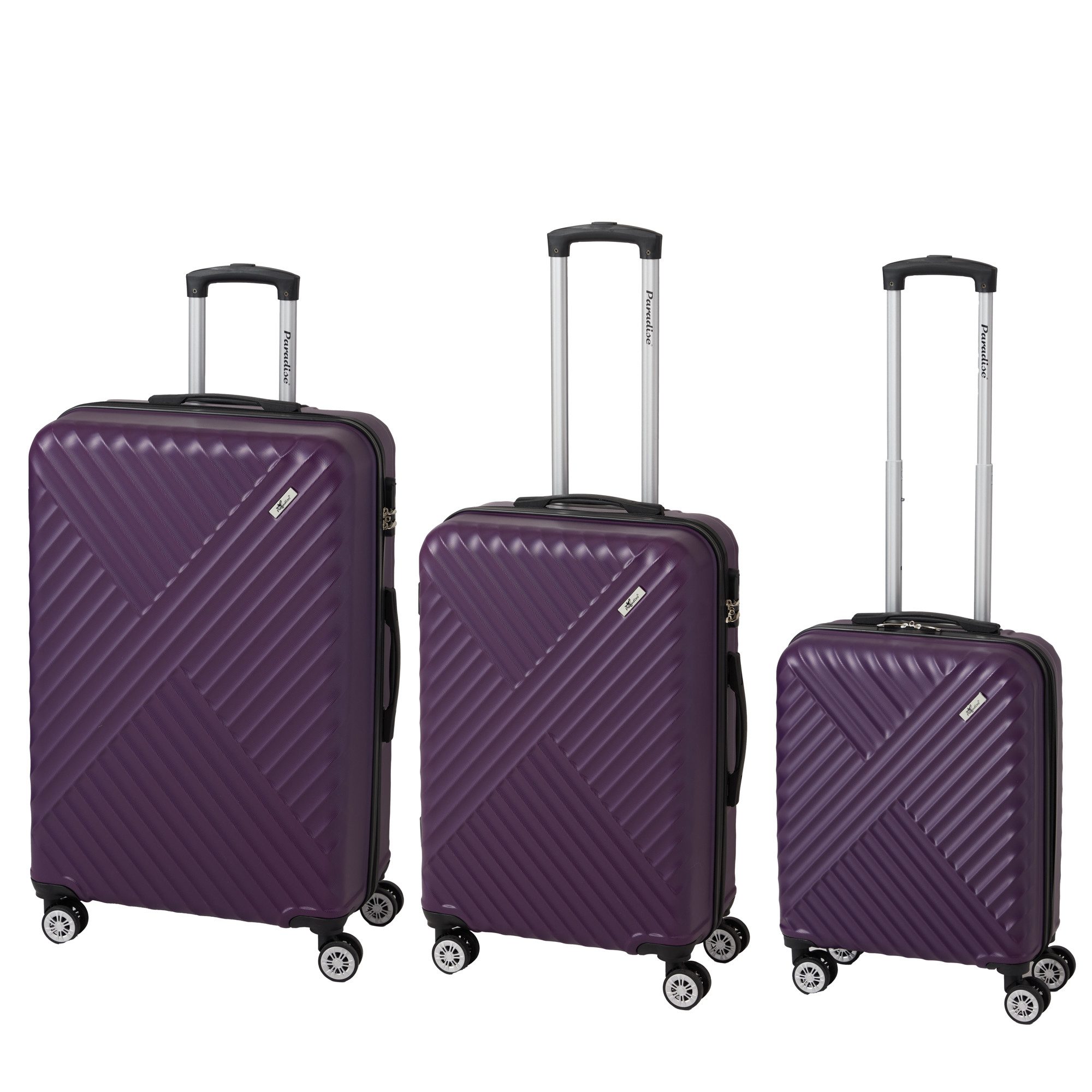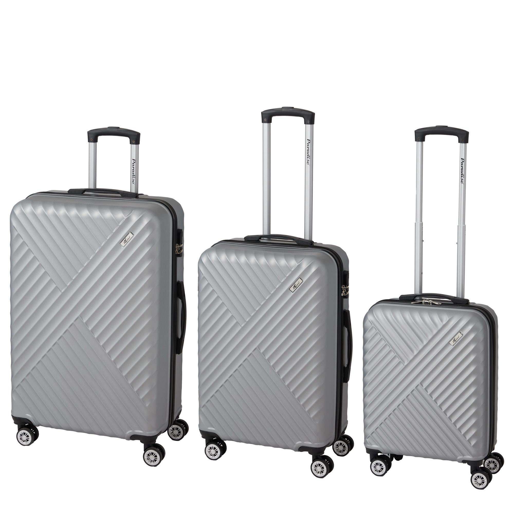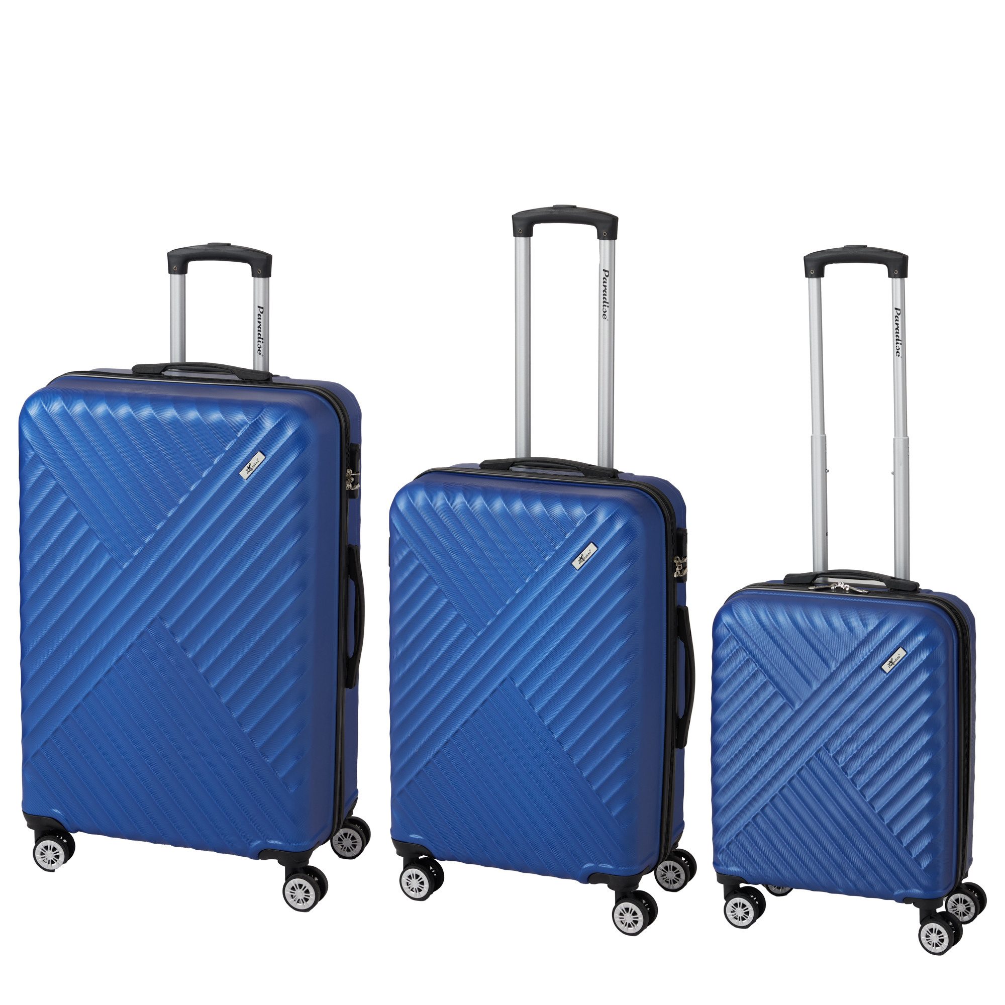 Trolley-Set - 3-teilig Die aus ABS gefertigten Trolleys zeichnen sich durch ihre extreme Leichtigkeit, viel Volumen, 4-Rollen-Technik und höchste Widerstandsfähigkeit, aus. Das Design (Struktur) gibt den Schalen eine zusätzliche "Versteifung". Durch die 4 leichtlaufenden Rollen (360 Grad-Drehung) mit Kugelgelenken ist das Manövrieren der Koffer ein Leichtes.