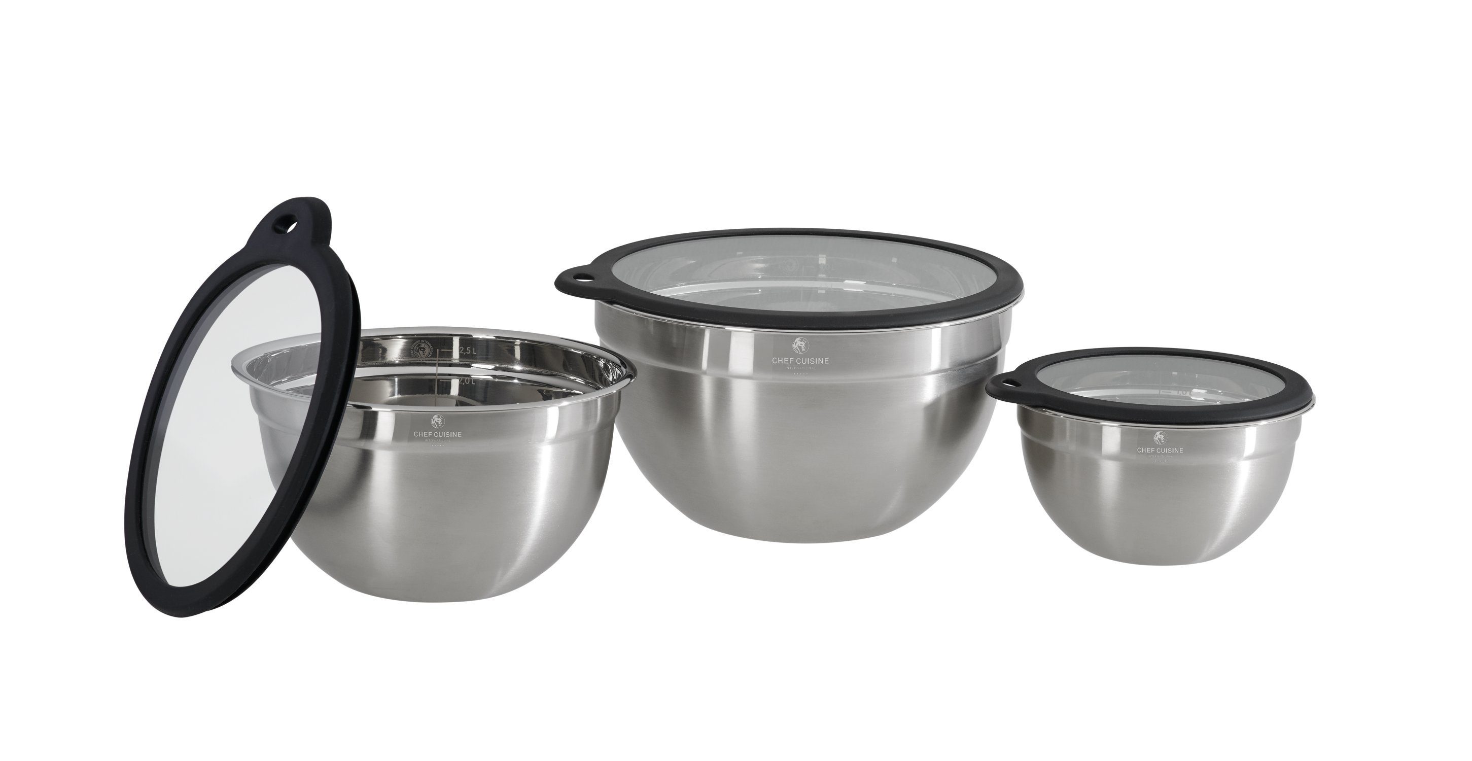 ø 16 cm, Inhalt ca. 1,25 l - ø 20 cm, Inhalt ca. 2,50 l - ø 24 cm, Inhalt ca. 4,00 l