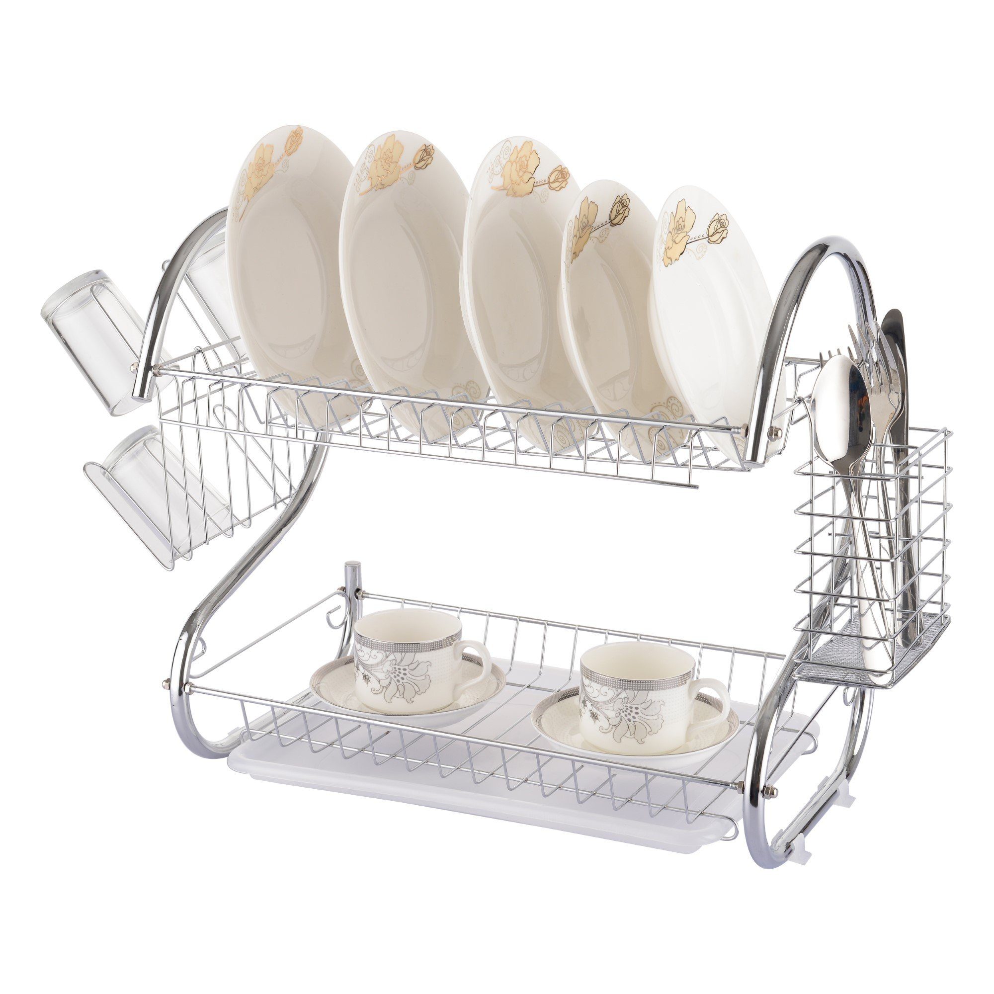 Geschirr Abtropfständer Abtropfgestell Abtropfregal Trockner 2 Etagen