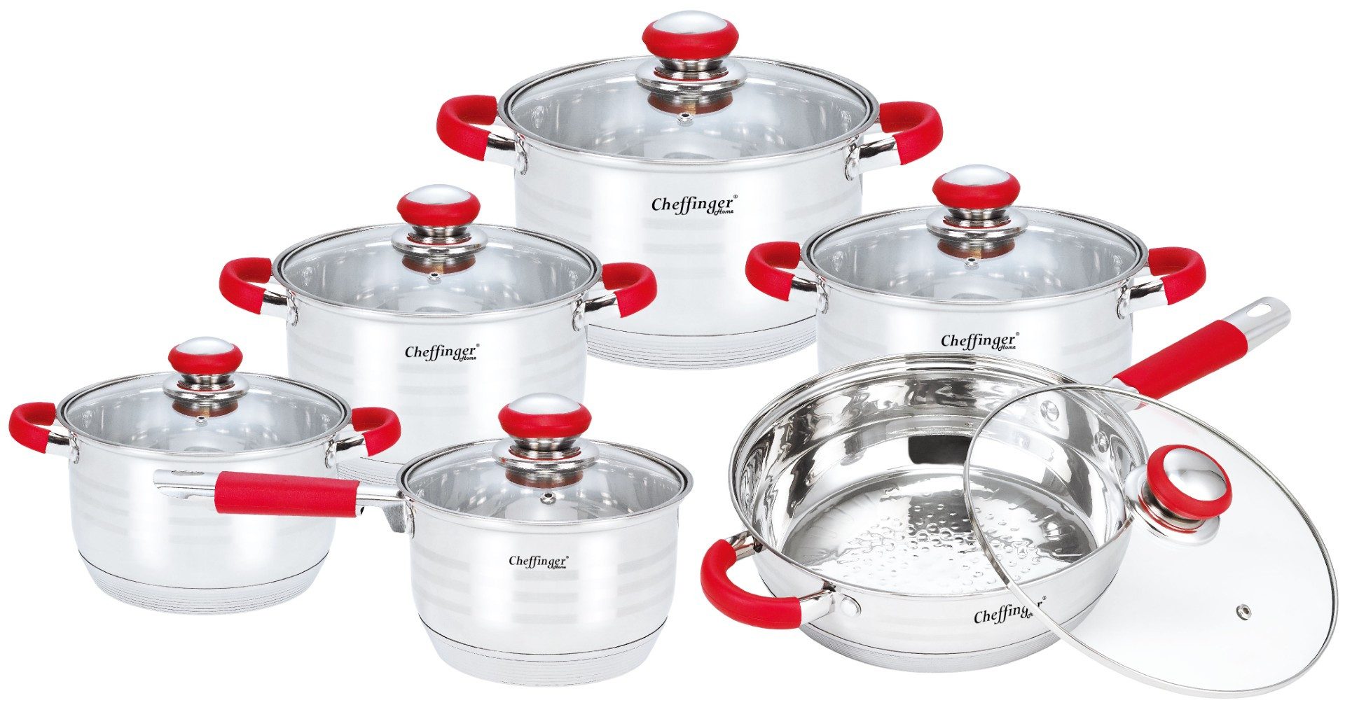 Mit diesem 12-teiligen Kochgeschirrset aus Edelstahl können Sie die köstlichsten Gerichte zubereiten.